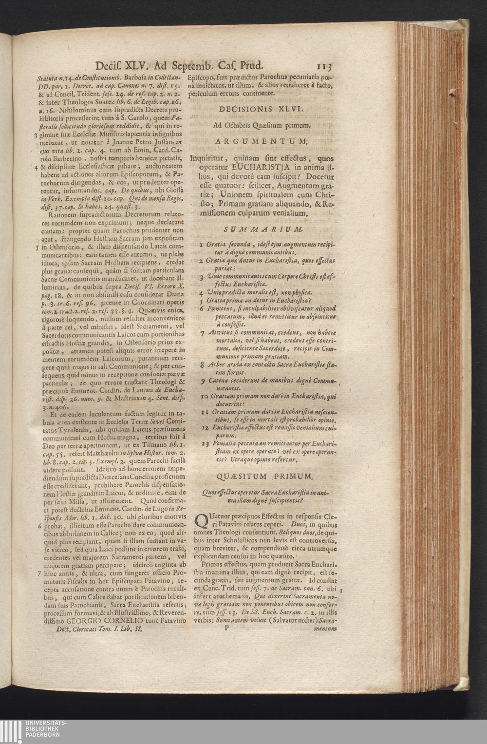 1,2 (1730) De Venerabili Eucharistiæ Sacramento Decisiones Theologico-Legales / Auctore Joanne Clericato Præposito Patavino Juris Utriusque Doctore Olim in Curia Episcopali Patavina Advocato, & Promotore Fiscali, deinde Auditore, ac demùm sub Regimine Eminentissimi, ac Reverentissimi S.M. Gregorii Card. Barbadici Episcopo Patavini Vicario Generali