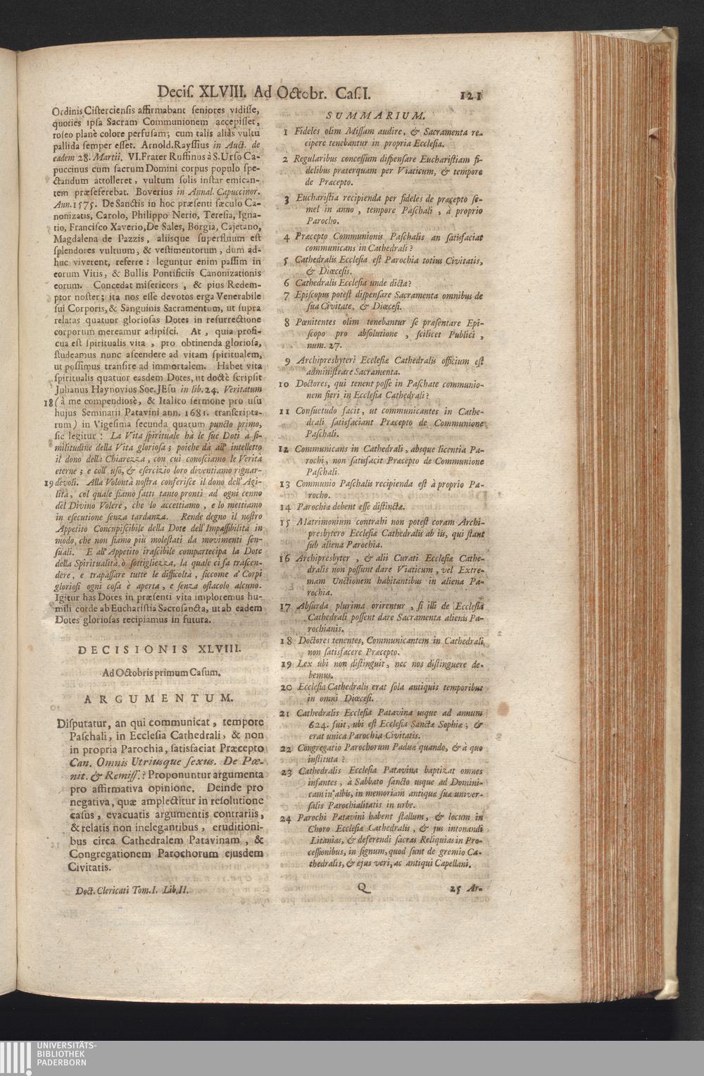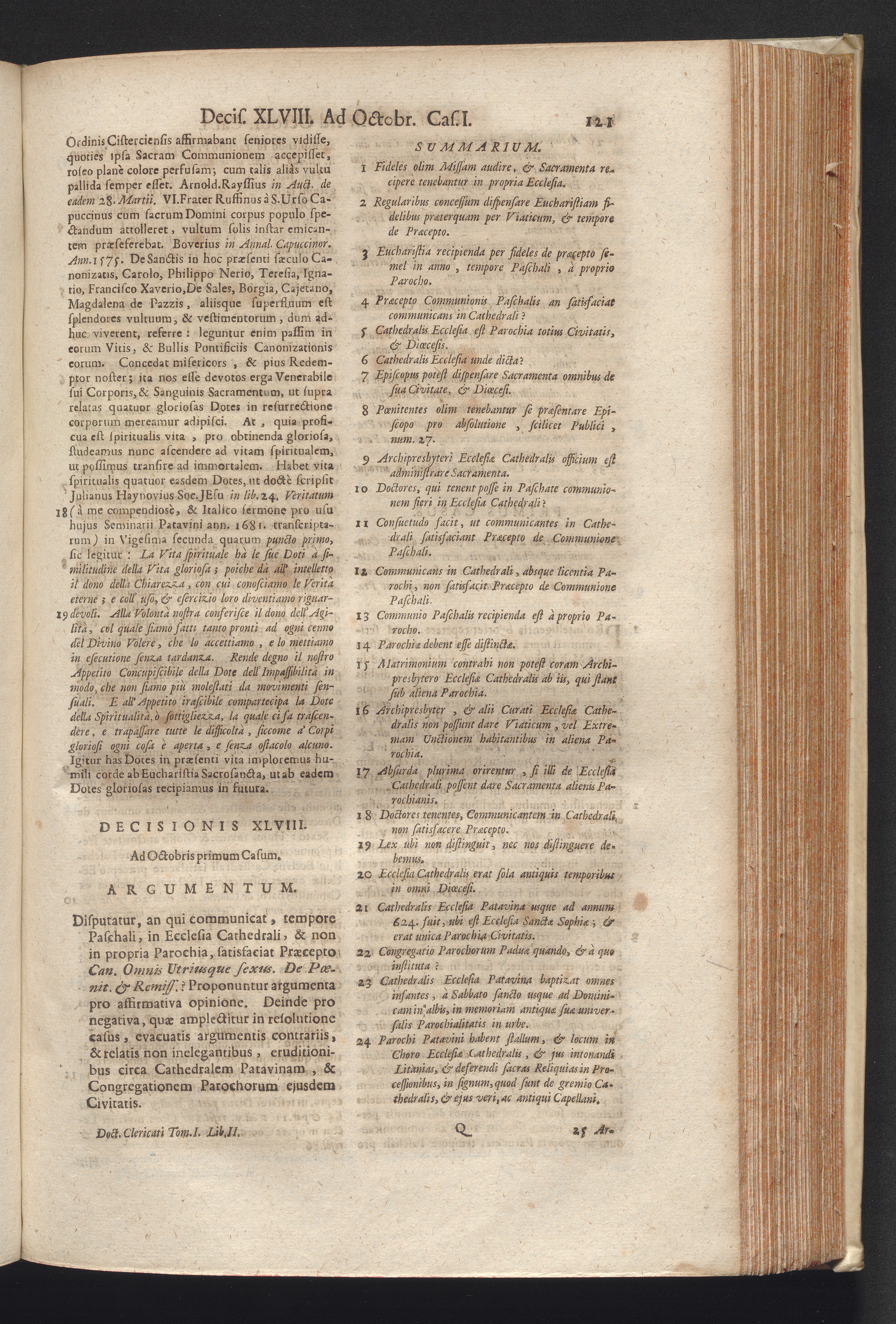 1,2 (1730) De Venerabili Eucharistiæ Sacramento Decisiones Theologico-Legales / Auctore Joanne Clericato Præposito Patavino Juris Utriusque Doctore Olim in Curia Episcopali Patavina Advocato, & Promotore Fiscali, deinde Auditore, ac demùm sub Regimine Eminentissimi, ac Reverentissimi S.M. Gregorii Card. Barbadici Episcopo Patavini Vicario Generali