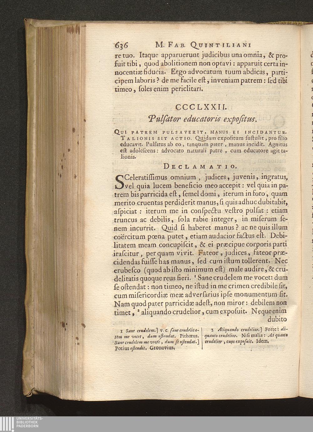 Tomus II (1665) M. Fab. Quintiliani Declamationes Undeviginti. M. Fabii Avi Et Calpurnii Flacci Declamationes. Auctoris Incerti Dialogus De causis corruptae Eloquentiae : Cvm Variorum Notis