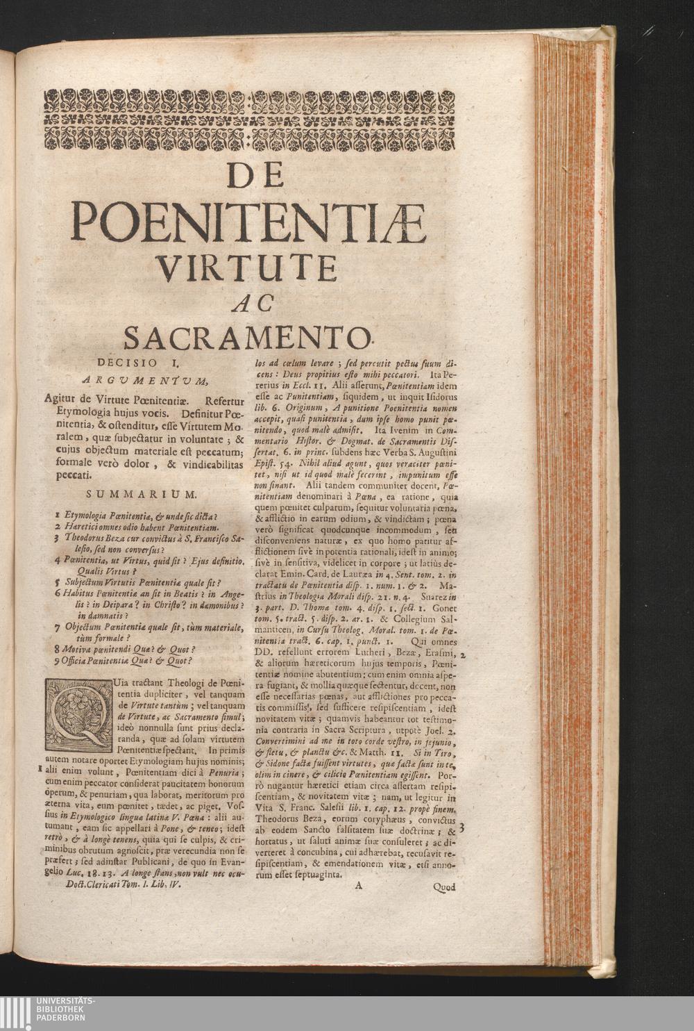 1,4 (1730) De Virtute Ac Sacramento Pœnitentiæ Decisiones / Auctore Joanne Clericato Præposito Patavino Juris Utriusque Doctore Olim in Curia Episcopali Patavina Advocato, & Promotore Fiscali, deinde Auditore, ac demùm sub Regimine Eminentissimi, ac Reverentissimi S.M. Gregorii Card. Barbadici Episcopo Patavini Vicario Generali