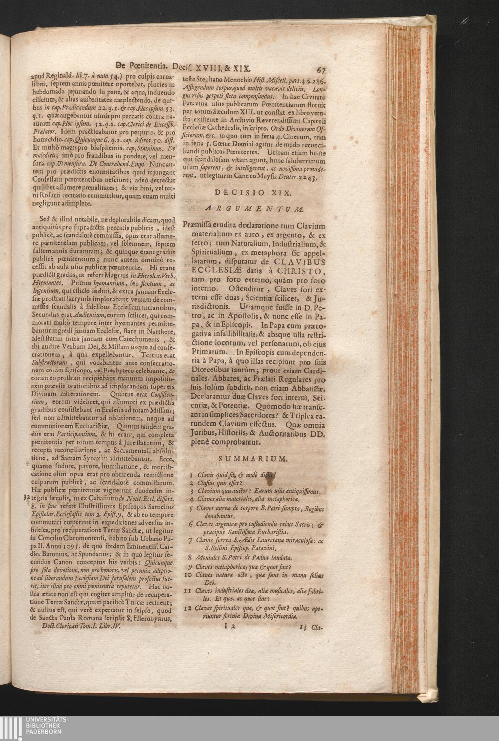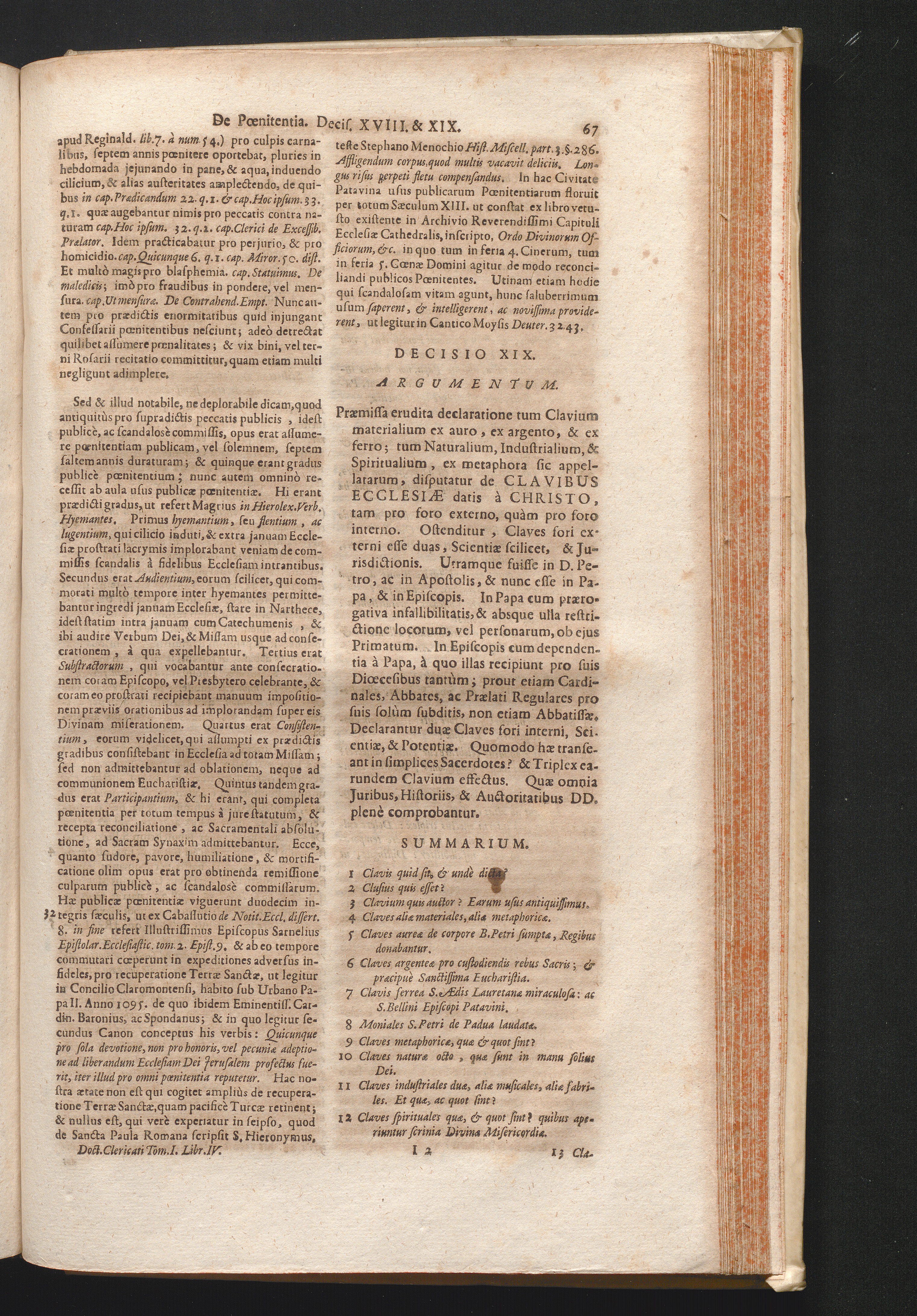 1,4 (1730) De Virtute Ac Sacramento Pœnitentiæ Decisiones / Auctore Joanne Clericato Præposito Patavino Juris Utriusque Doctore Olim in Curia Episcopali Patavina Advocato, & Promotore Fiscali, deinde Auditore, ac demùm sub Regimine Eminentissimi, ac Reverentissimi S.M. Gregorii Card. Barbadici Episcopo Patavini Vicario Generali