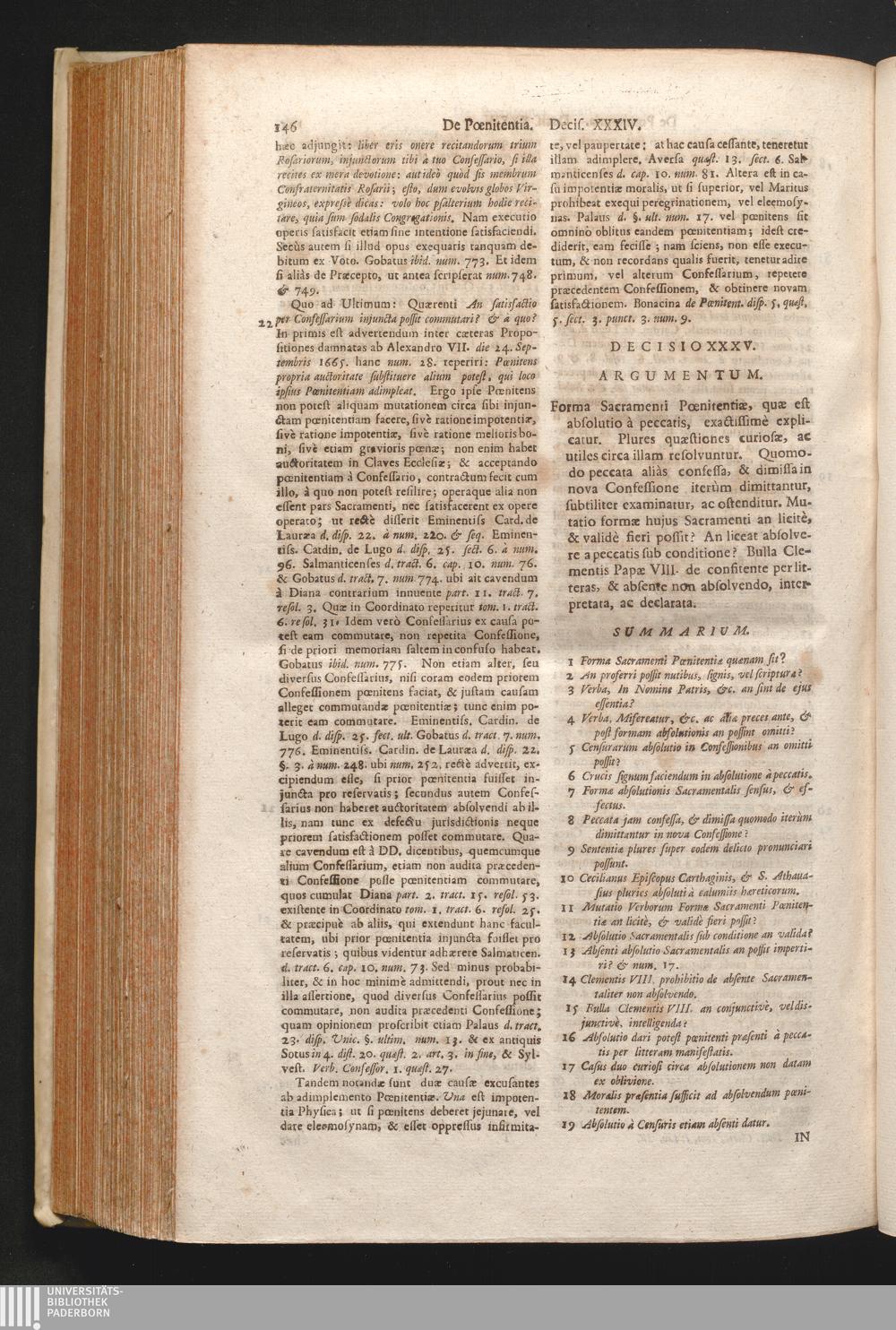 1,4 (1730) De Virtute Ac Sacramento Pœnitentiæ Decisiones / Auctore Joanne Clericato Præposito Patavino Juris Utriusque Doctore Olim in Curia Episcopali Patavina Advocato, & Promotore Fiscali, deinde Auditore, ac demùm sub Regimine Eminentissimi, ac Reverentissimi S.M. Gregorii Card. Barbadici Episcopo Patavini Vicario Generali