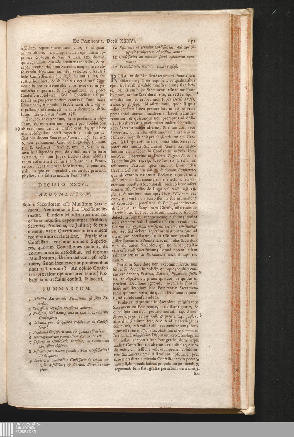 1,4 (1730) De Virtute Ac Sacramento Pœnitentiæ Decisiones / Auctore Joanne Clericato Præposito Patavino Juris Utriusque Doctore Olim in Curia Episcopali Patavina Advocato, & Promotore Fiscali, deinde Auditore, ac demùm sub Regimine Eminentissimi, ac Reverentissimi S.M. Gregorii Card. Barbadici Episcopo Patavini Vicario Generali