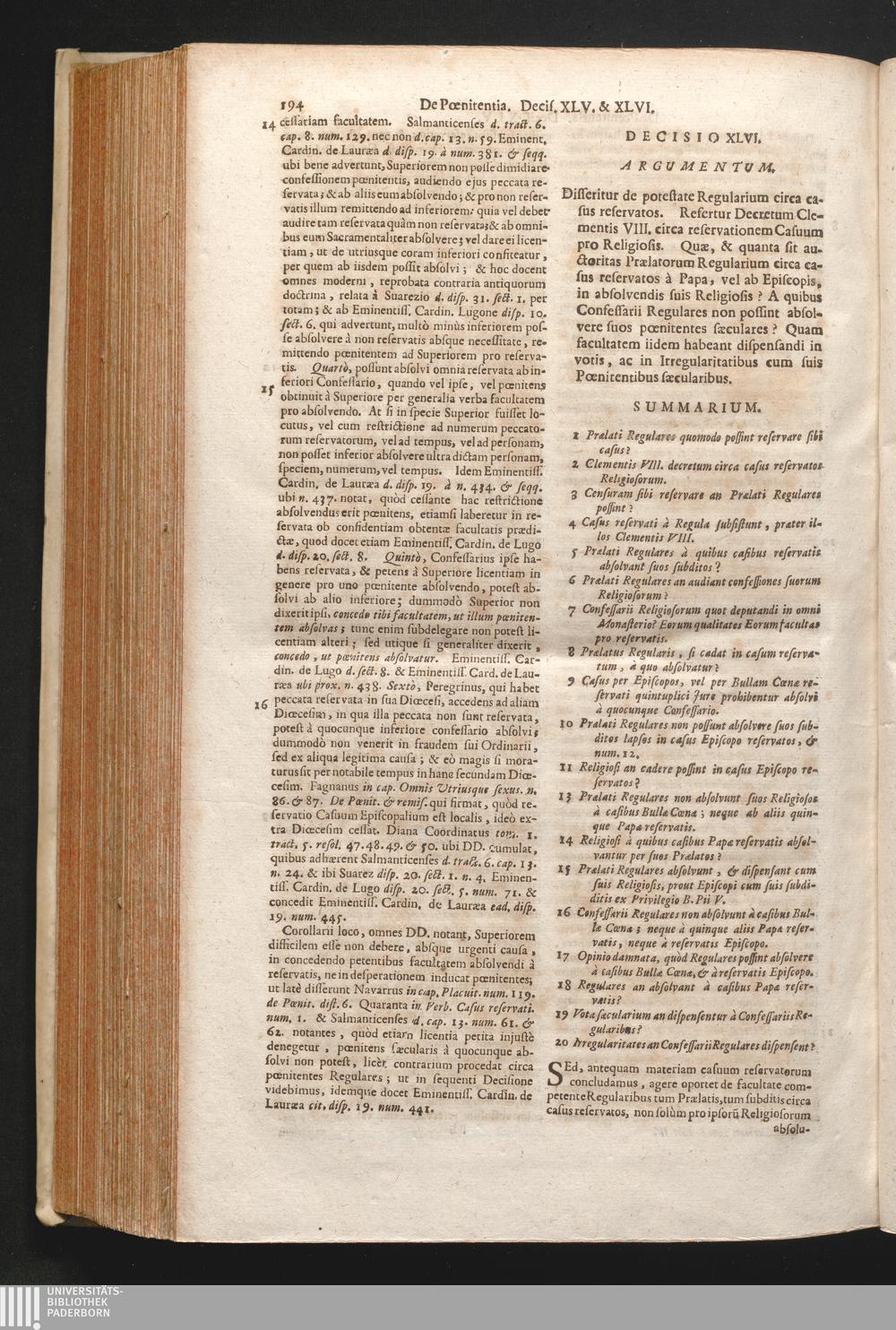 1,4 (1730) De Virtute Ac Sacramento Pœnitentiæ Decisiones / Auctore Joanne Clericato Præposito Patavino Juris Utriusque Doctore Olim in Curia Episcopali Patavina Advocato, & Promotore Fiscali, deinde Auditore, ac demùm sub Regimine Eminentissimi, ac Reverentissimi S.M. Gregorii Card. Barbadici Episcopo Patavini Vicario Generali