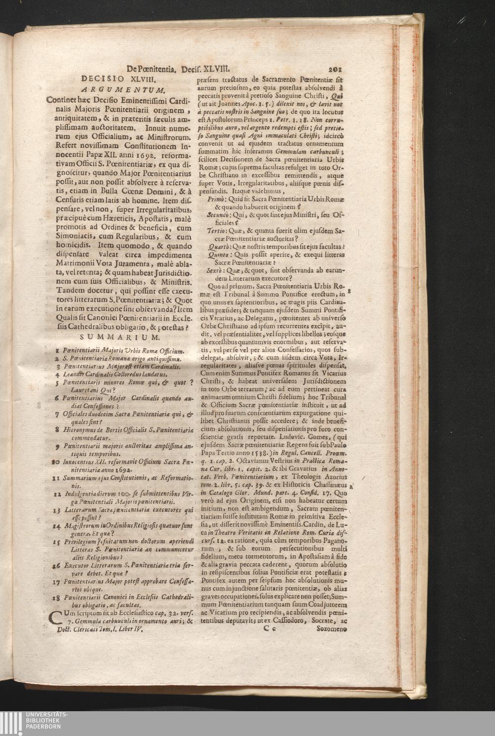 1,4 (1730) De Virtute Ac Sacramento Pœnitentiæ Decisiones / Auctore Joanne Clericato Præposito Patavino Juris Utriusque Doctore Olim in Curia Episcopali Patavina Advocato, & Promotore Fiscali, deinde Auditore, ac demùm sub Regimine Eminentissimi, ac Reverentissimi S.M. Gregorii Card. Barbadici Episcopo Patavini Vicario Generali