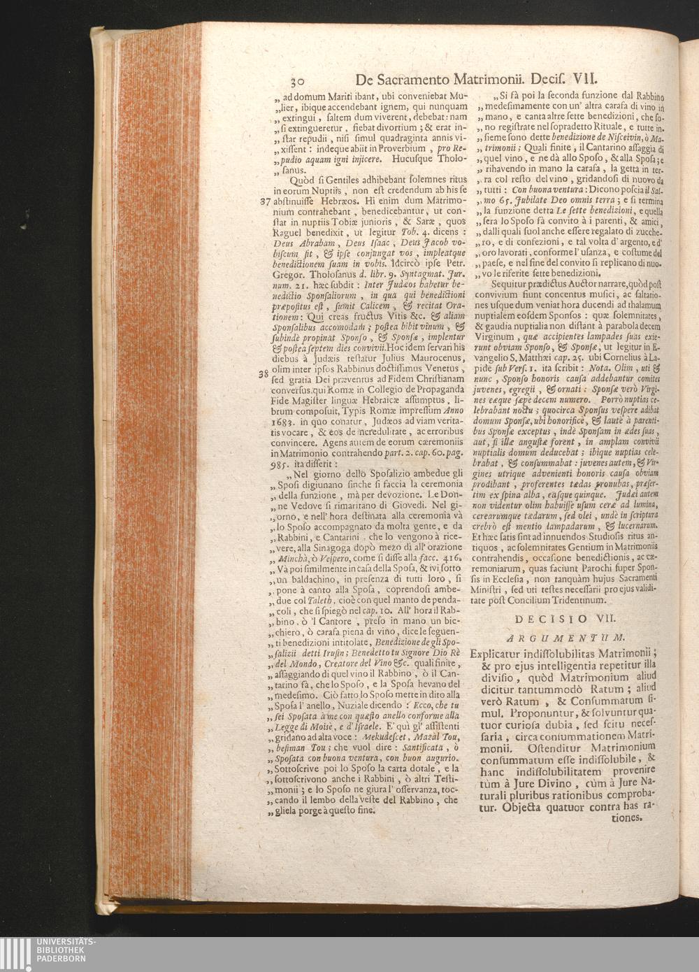 2,6 (1730) Decisiones De Matrimonio / Auctore Joanne Clericato Præposito Patavino Juris Utriusque Doctore Olim in Curia Episcopali Patavina Advocato, & Promotore Fiscali, deinde Auditore, ac demùm sub Regimine Eminentissimi, ac Reverentissimi S.M. Gregorii Card. Barbadici Episcopo Patavini Vicario Generali