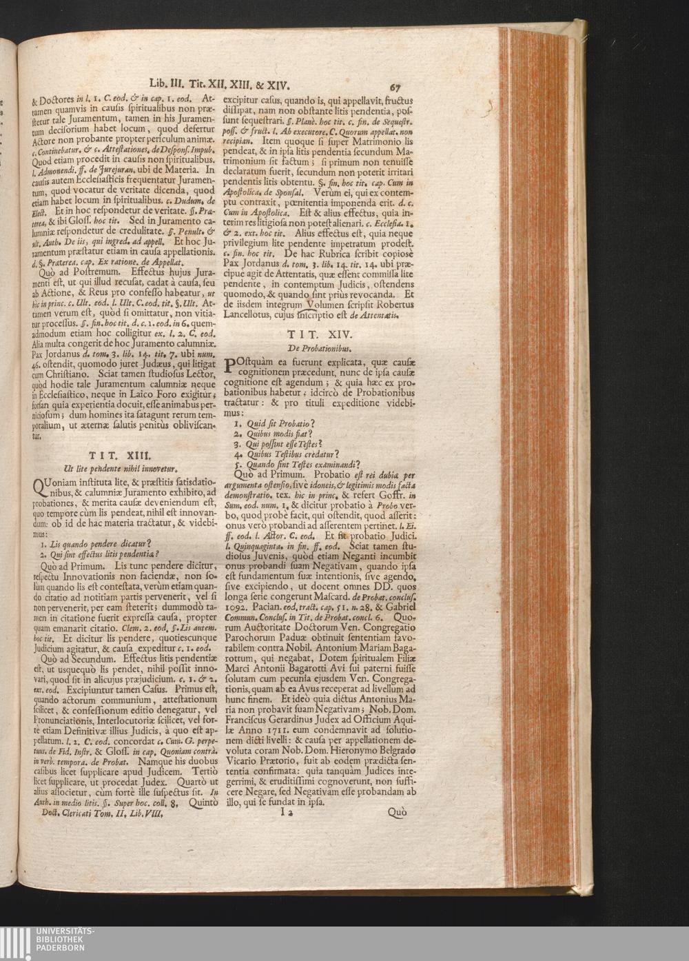 2,8 (1730) Via Lactea Sive Institutiones Iuris Canonici / Auctore Joanne Clericato Præposito Patavino Juris Utriusque Doctore Olim in Curia Episcopali Patavina Advocato, & Promotore Fiscali, deinde Auditore, ac demùm sub Regimine Eminentissimi, ac Reverentissimi S.M. Gregorii Card. Barbadici Episcopo Patavini Vicario Generali