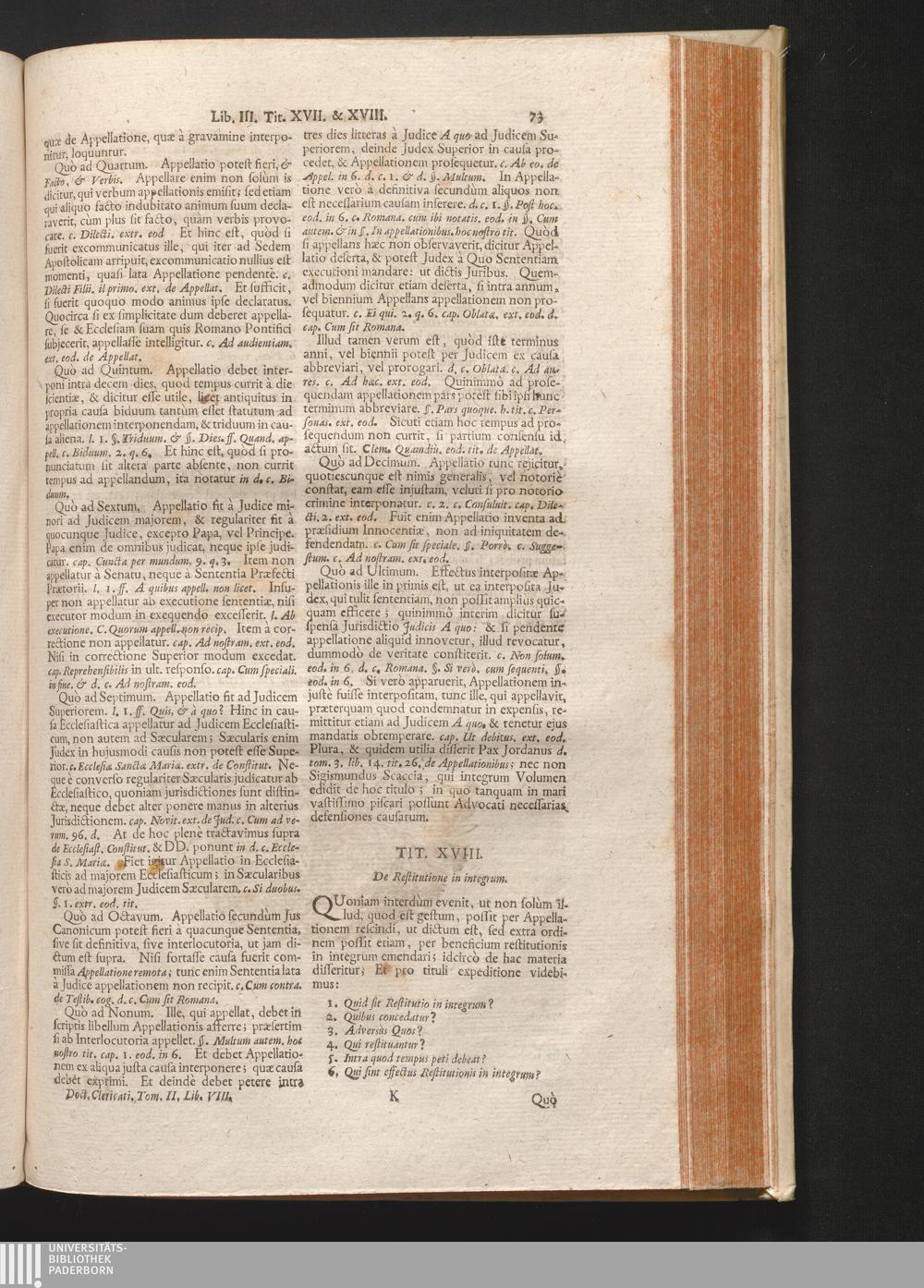 2,8 (1730) Via Lactea Sive Institutiones Iuris Canonici / Auctore Joanne Clericato Præposito Patavino Juris Utriusque Doctore Olim in Curia Episcopali Patavina Advocato, & Promotore Fiscali, deinde Auditore, ac demùm sub Regimine Eminentissimi, ac Reverentissimi S.M. Gregorii Card. Barbadici Episcopo Patavini Vicario Generali
