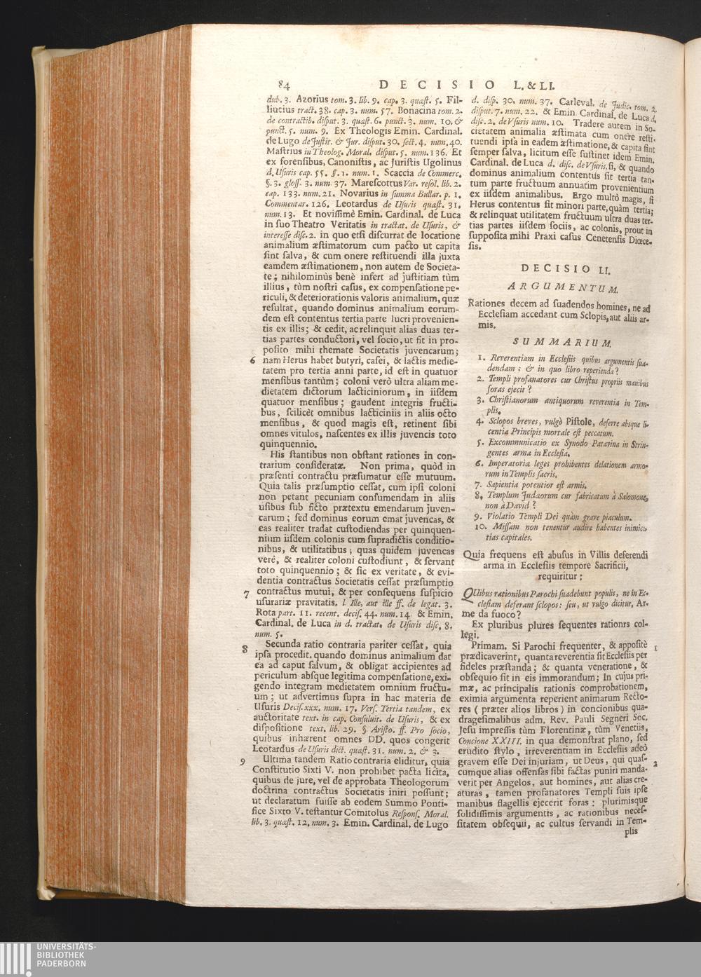 2,9 (1730) Decisiones Miscellanæ / Auctore Joanne Clericato Præposito Patavino Juris Utriusque Doctore Olim in Curia Episcopali Patavina Advocato, & Promotore Fiscali, deinde Auditore, ac demùm sub Regimine Eminentissimi, ac Reverentissimi S.M. Gregorii Card. Barbadici Episcopo Patavini Vicario Generali