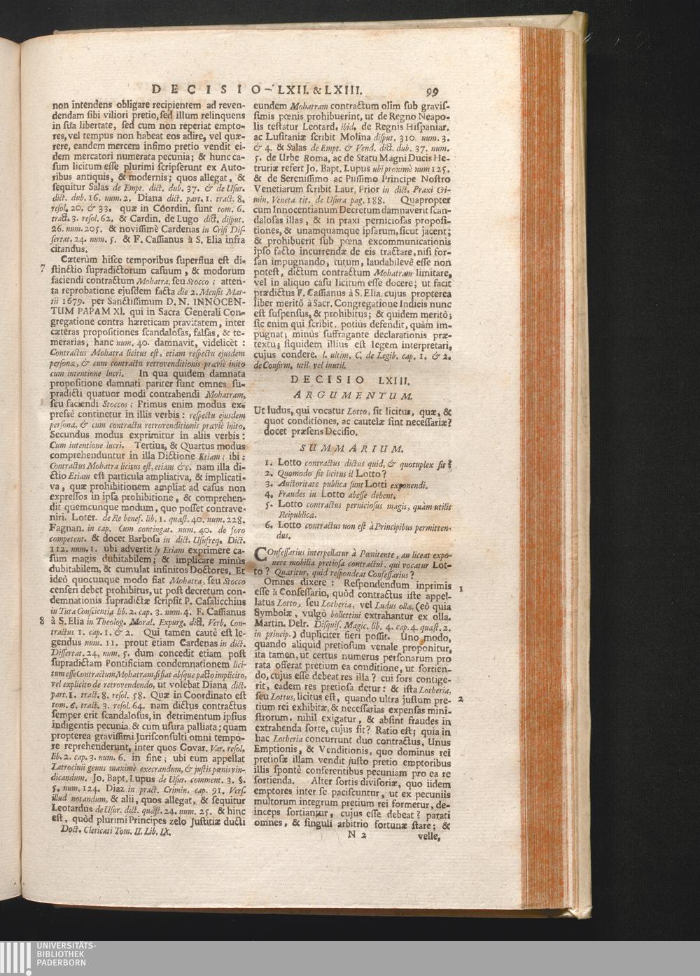2,9 (1730) Decisiones Miscellanæ / Auctore Joanne Clericato Præposito Patavino Juris Utriusque Doctore Olim in Curia Episcopali Patavina Advocato, & Promotore Fiscali, deinde Auditore, ac demùm sub Regimine Eminentissimi, ac Reverentissimi S.M. Gregorii Card. Barbadici Episcopo Patavini Vicario Generali