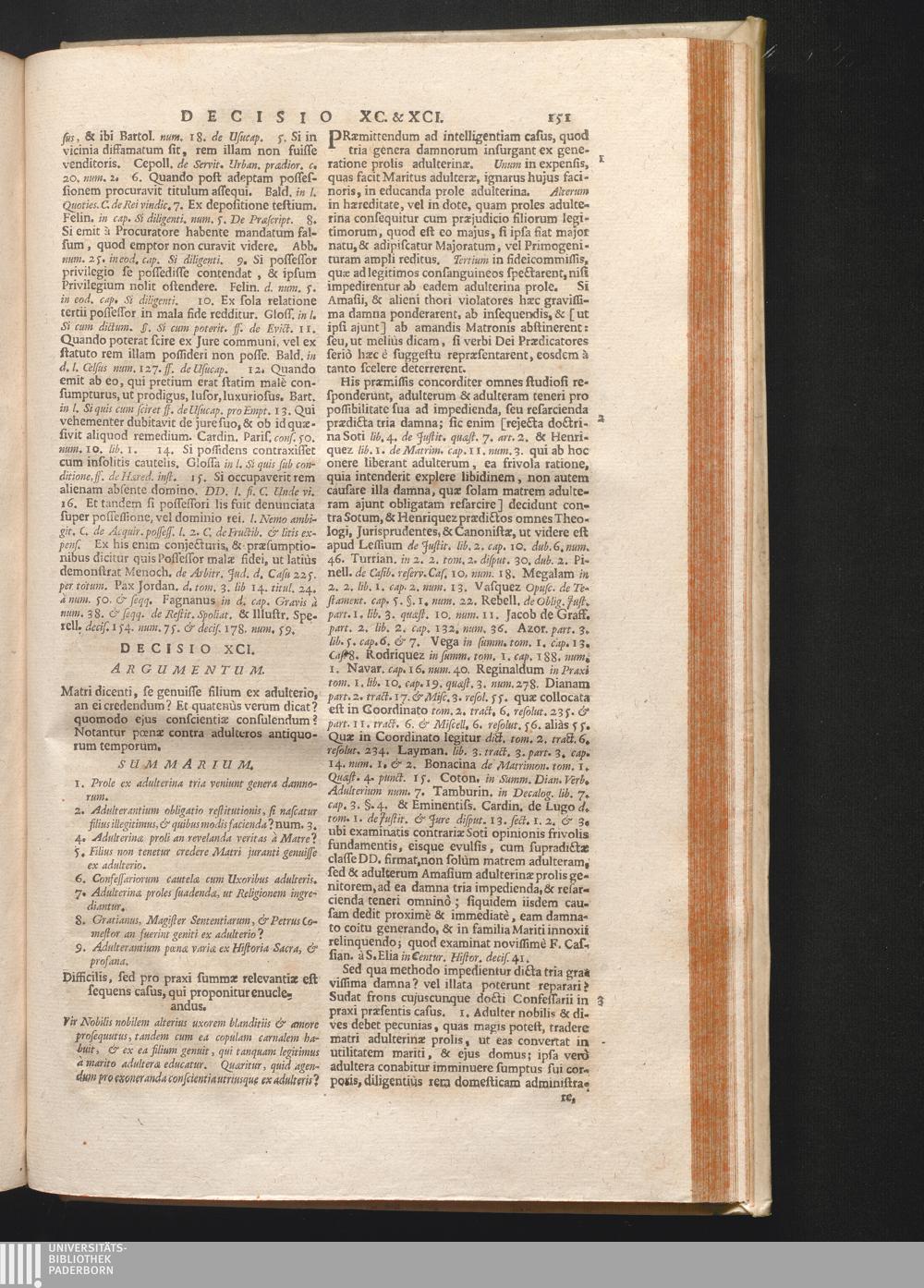 2,9 (1730) Decisiones Miscellanæ / Auctore Joanne Clericato Præposito Patavino Juris Utriusque Doctore Olim in Curia Episcopali Patavina Advocato, & Promotore Fiscali, deinde Auditore, ac demùm sub Regimine Eminentissimi, ac Reverentissimi S.M. Gregorii Card. Barbadici Episcopo Patavini Vicario Generali