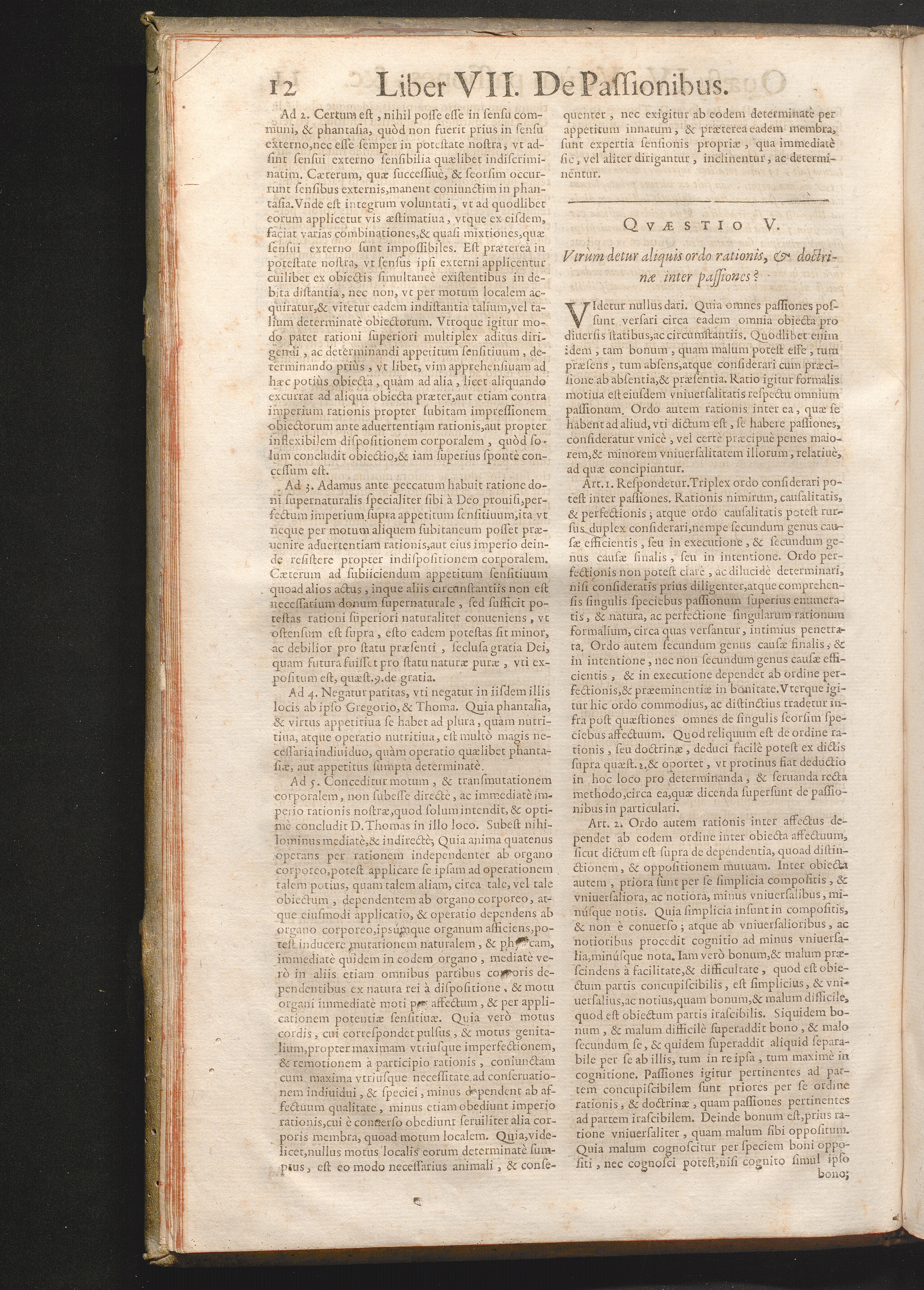 V. Vtrum detur aliquis ordo rationis, & doctrinæ inter passiones?