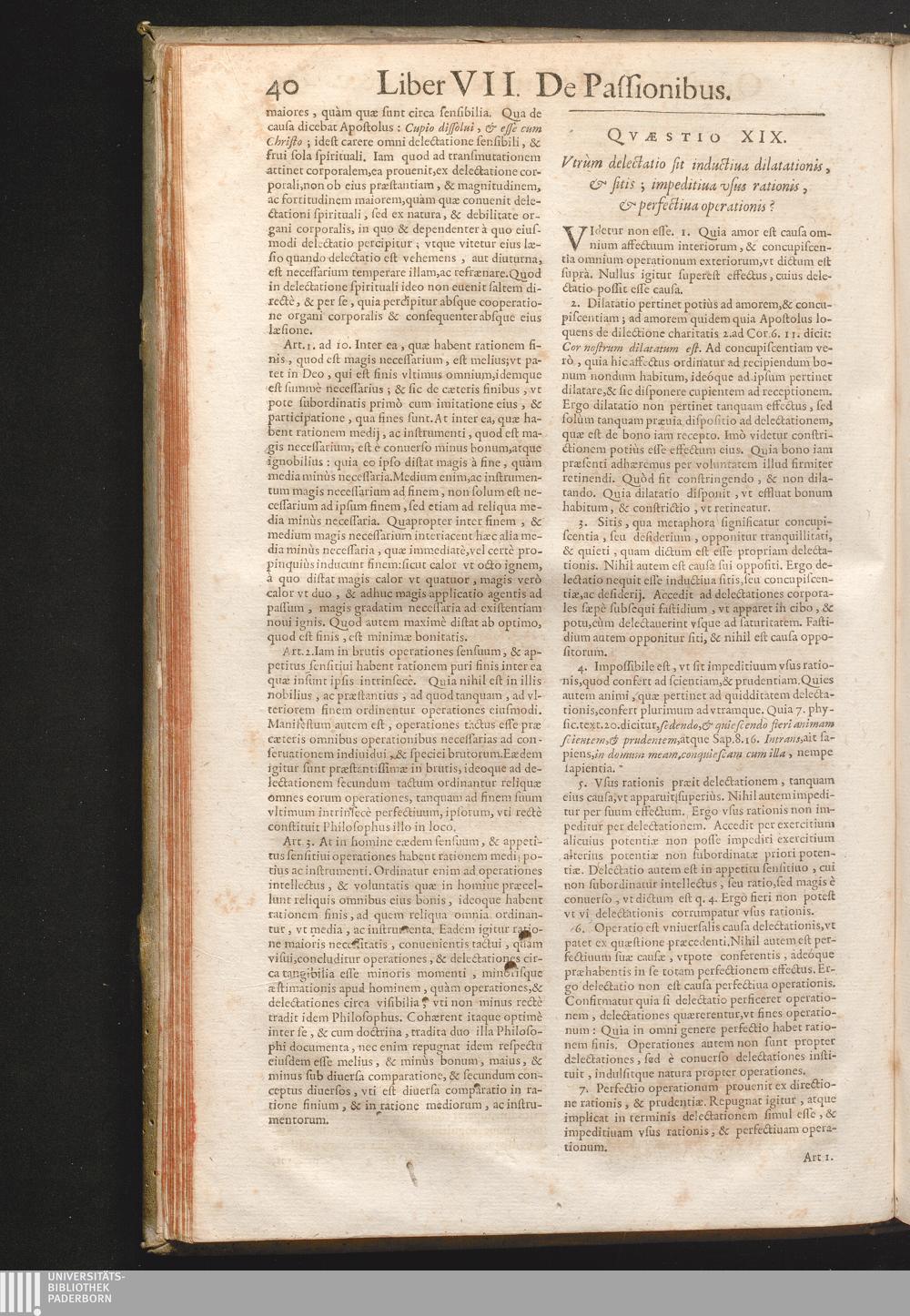 XIX. Vtrum delectatio sit inductiua dilatationis, & sitis; impeditiua vsus rationis,[...]
