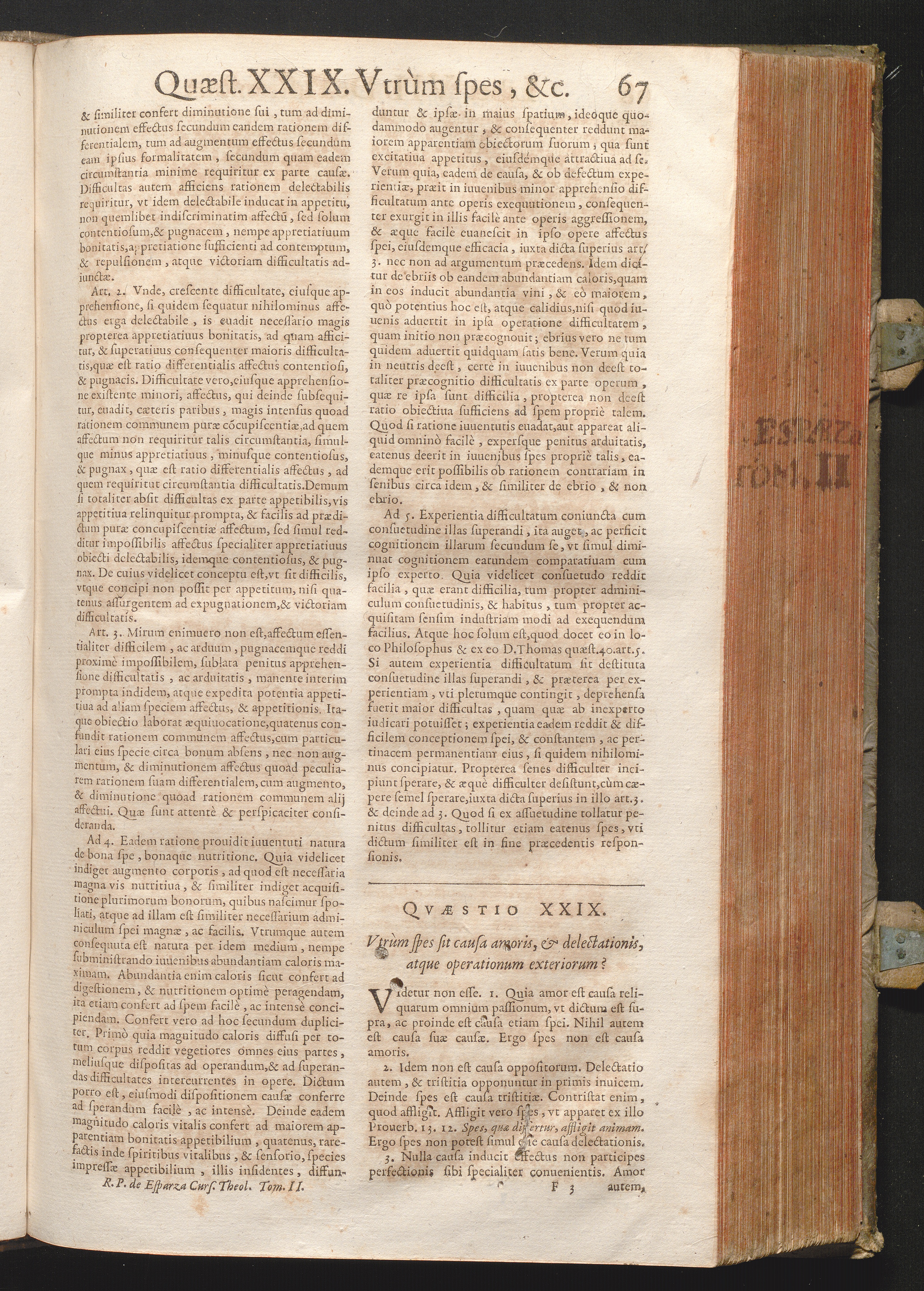 XXIX. Vtrum spes sit causa amoris, & delectationis, atque operationum exteriorum[...]