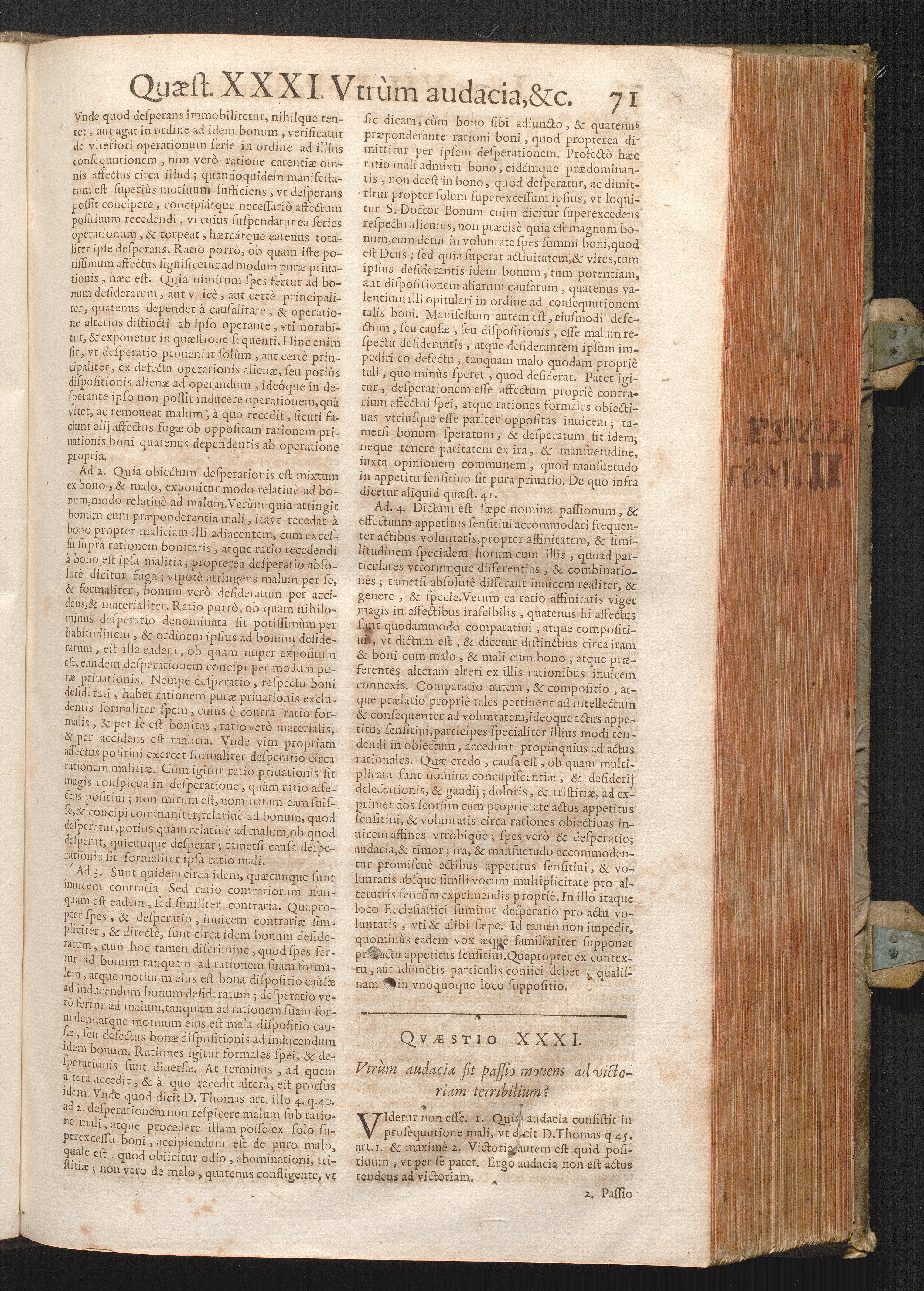 XXXI. Vtrum audacia sit passio mouens ad victoriam terribilium?