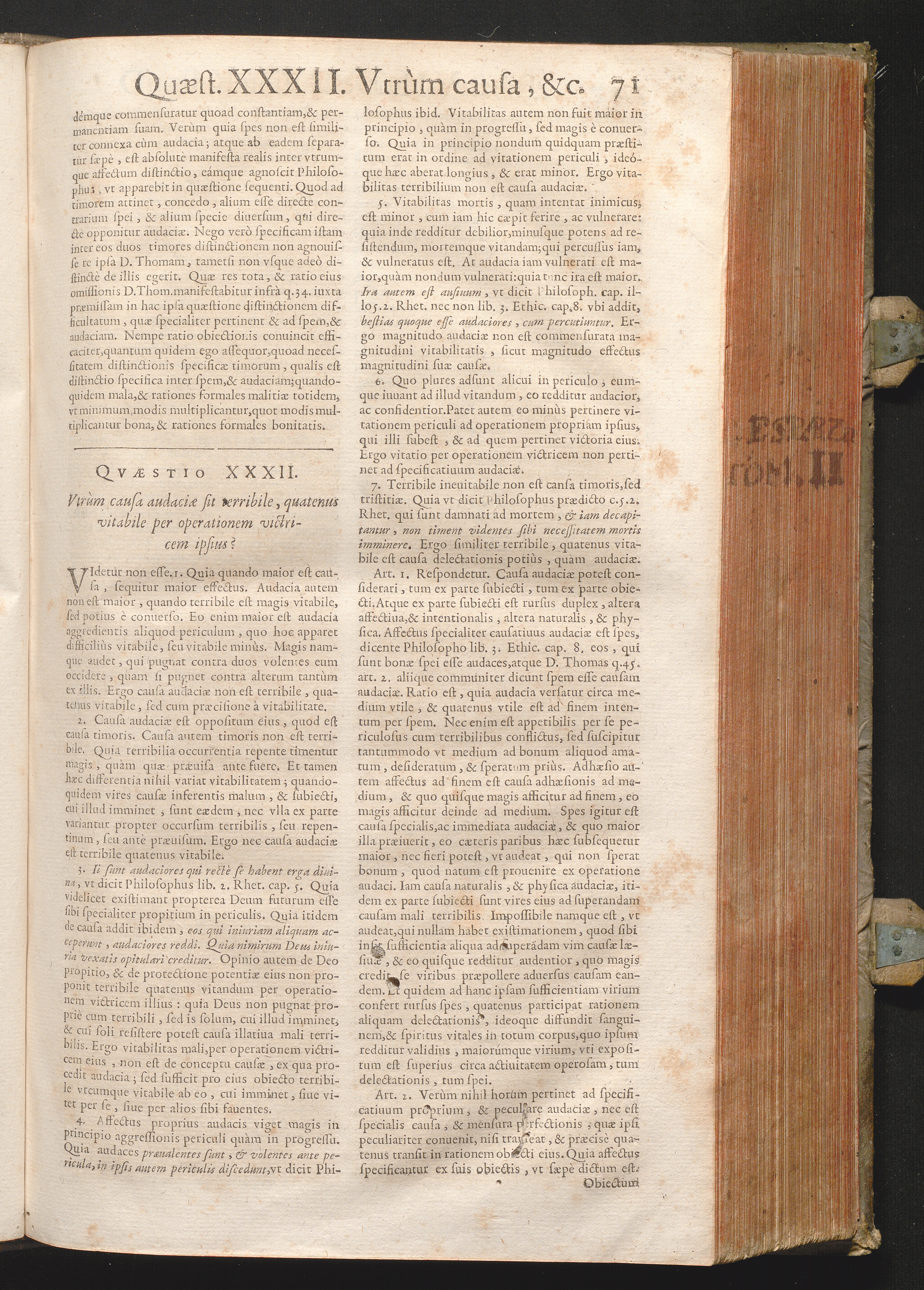 XXXII. Vtrum causa audaciæ sit terribile quatenus vitabile per operationem victricem[...]
