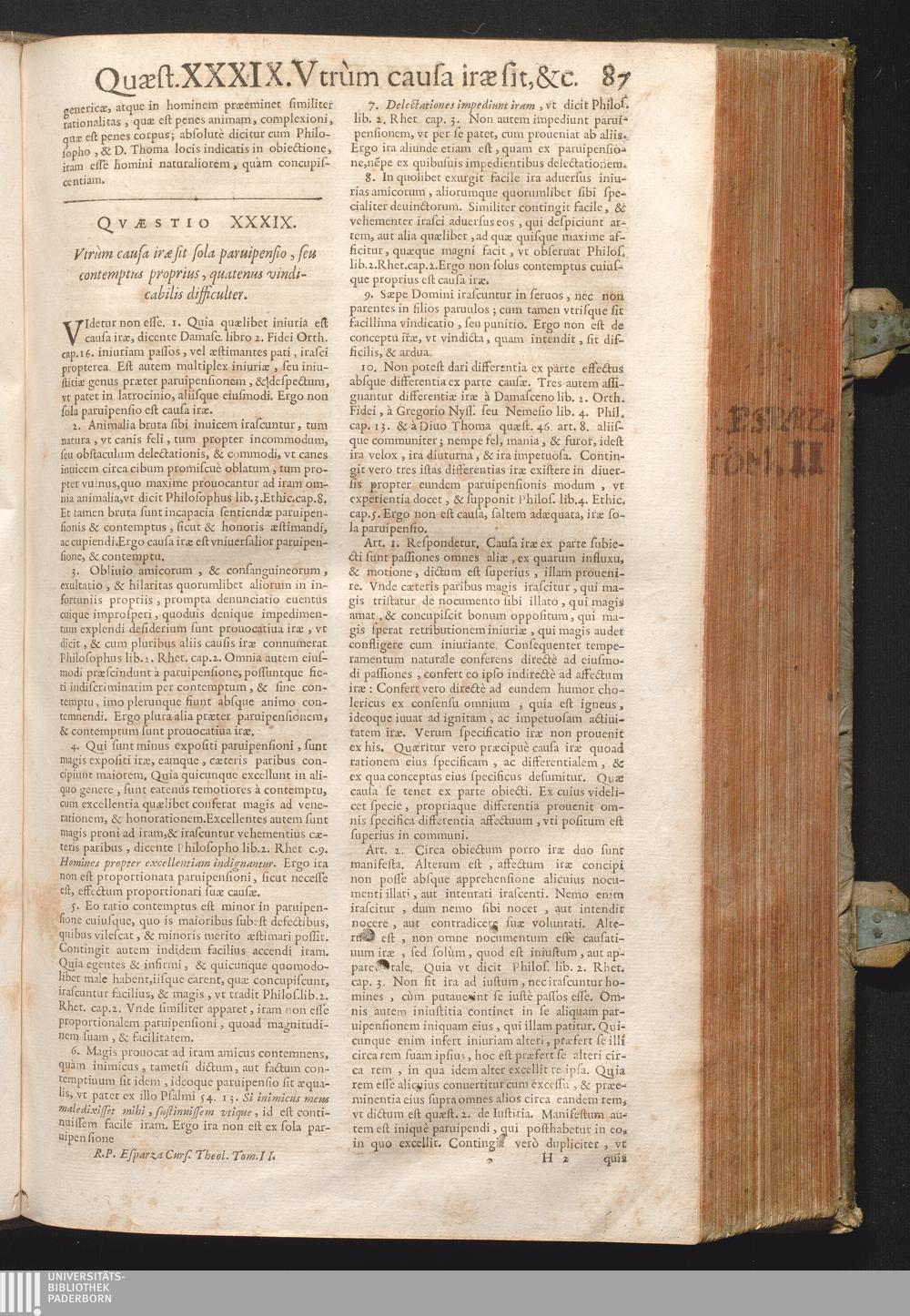 XXXIX. Vtrum causa iræ sit sola paruipensio, seu contemptus proprius, quatenus vindicabilis[...]