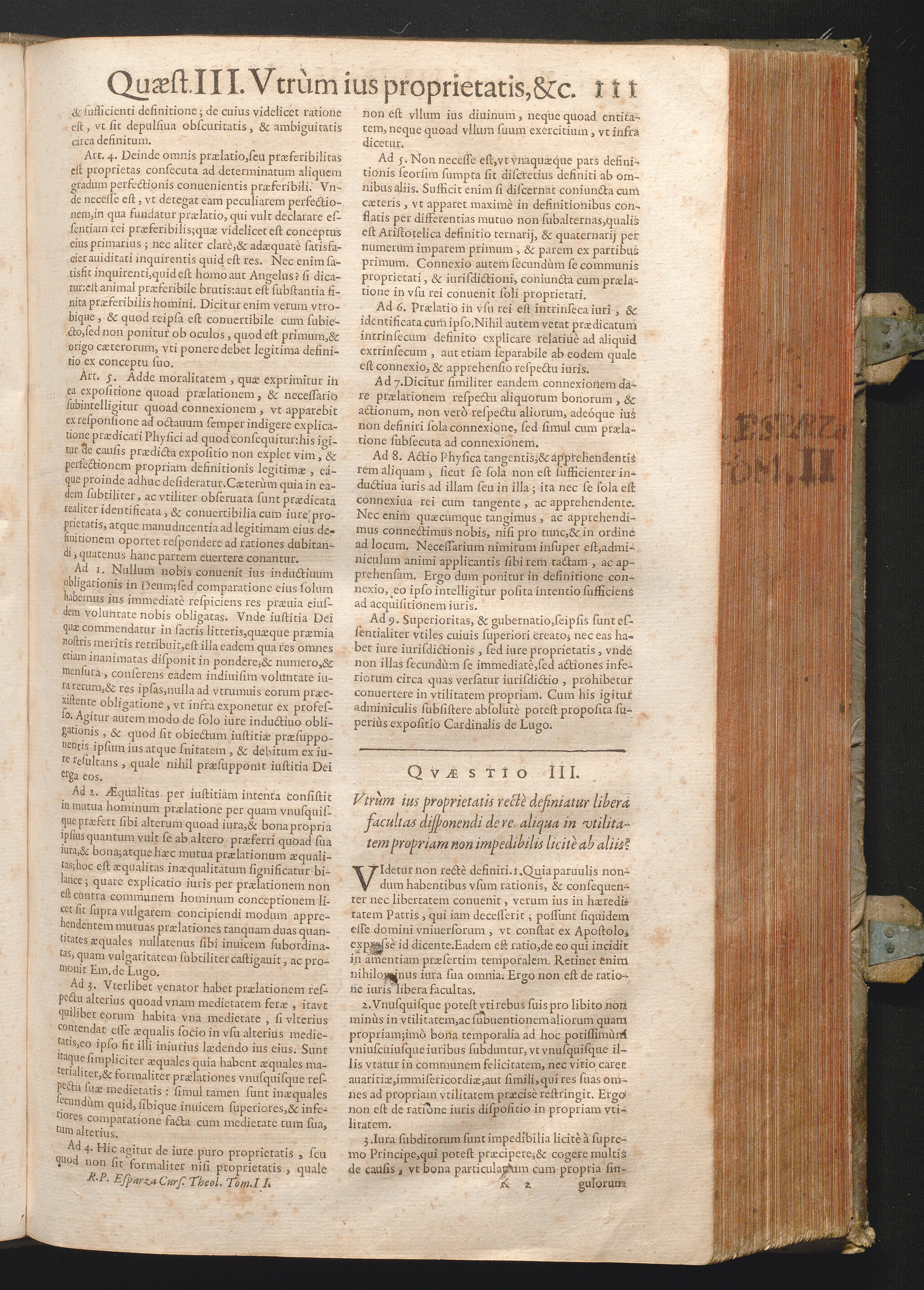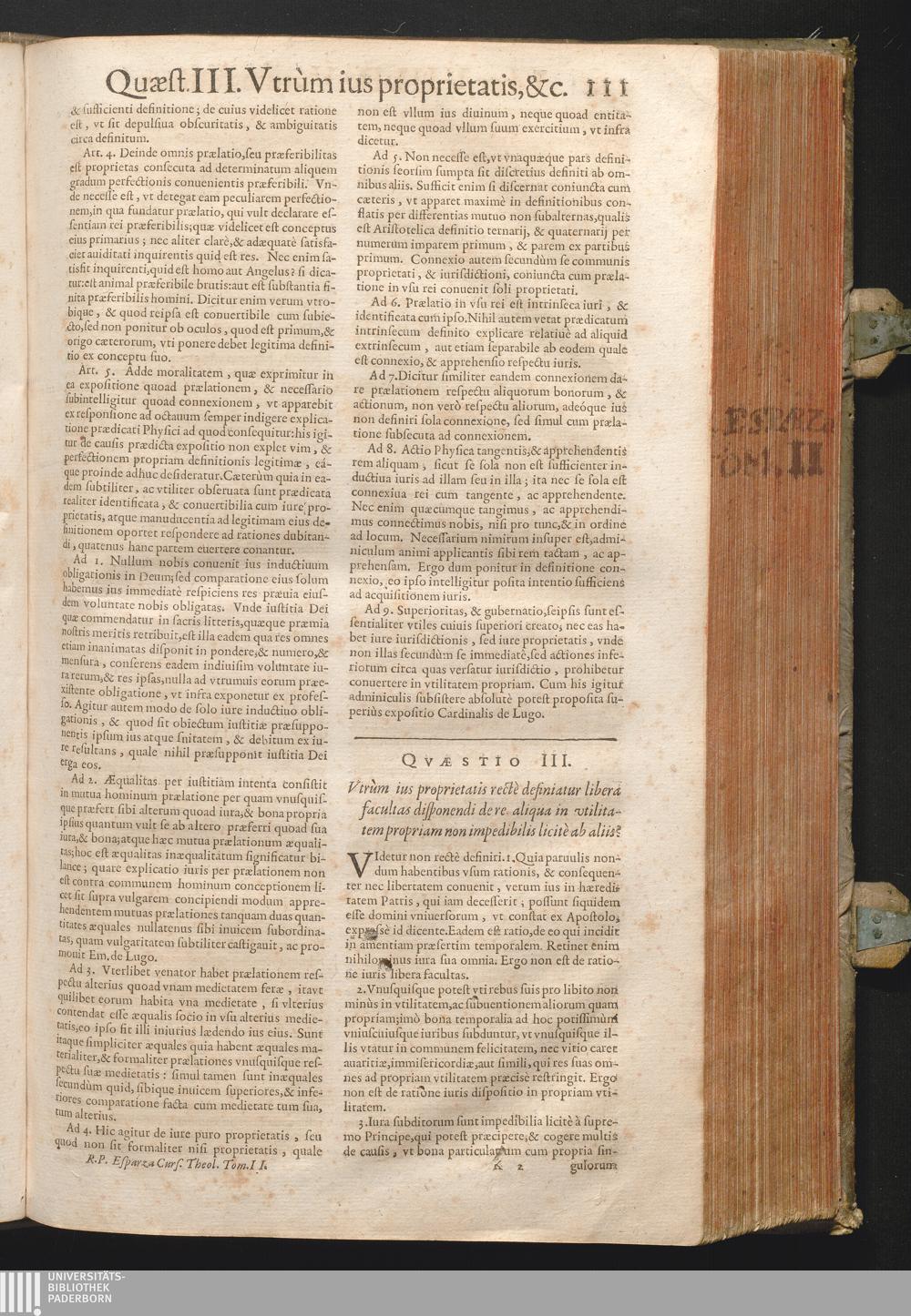 III. Vtrum ius proprietatis rectè definiatur Libera facultas disponendi de re aliqua[...]