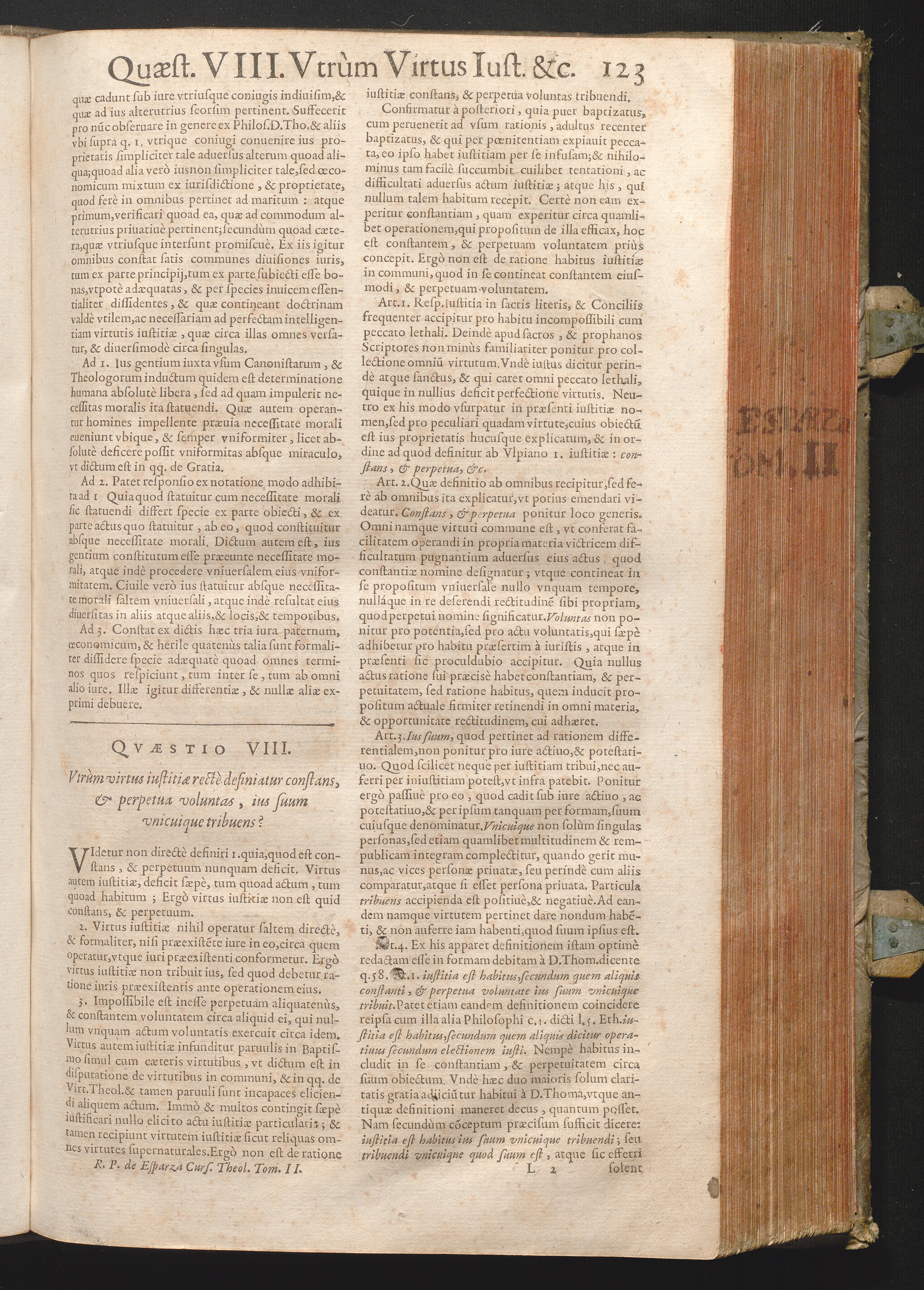 VIII. Vtrum virtus iustitiæ rectè definiatur Constans, & perpetua voluntas ius suum[...]