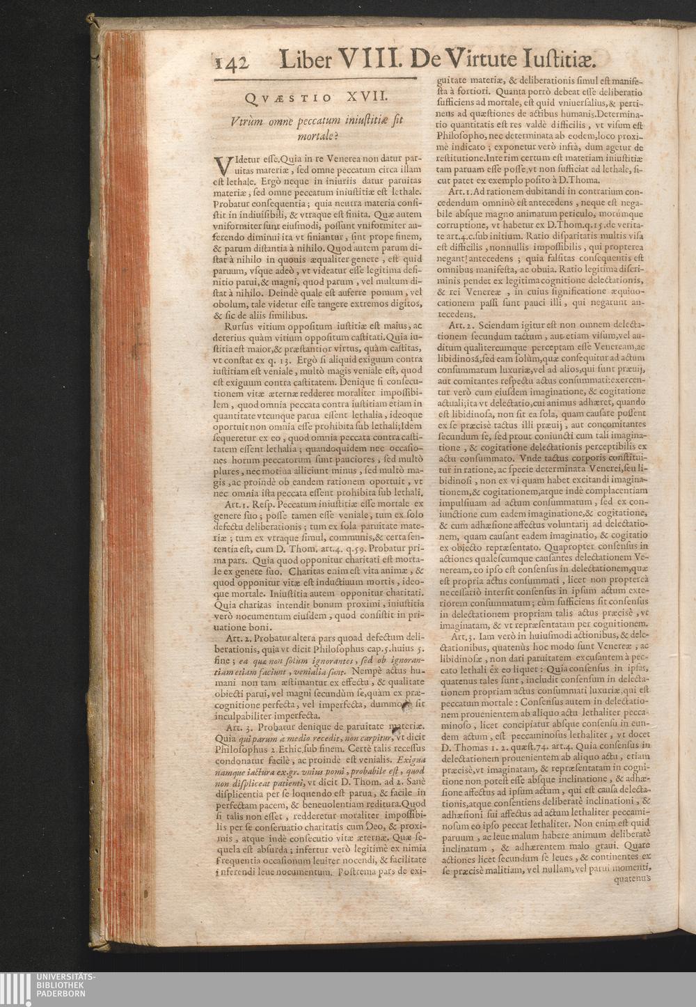 XVII. Vtrum omne peccatum iniustitiæ sit mortale?