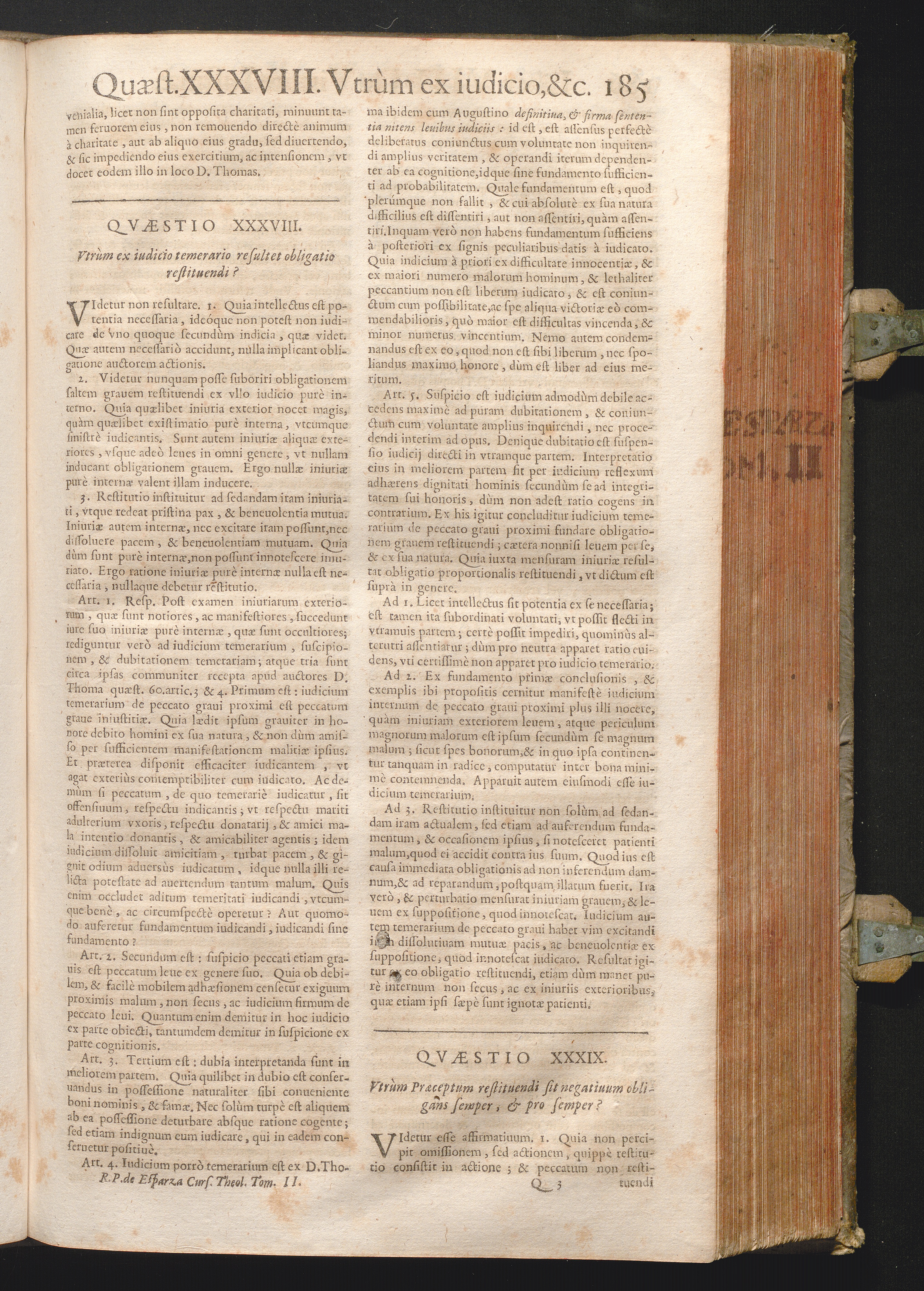 XXXIX. Vtrum præceptum restituendi sit negatiuum obligans semper, & pro semper?