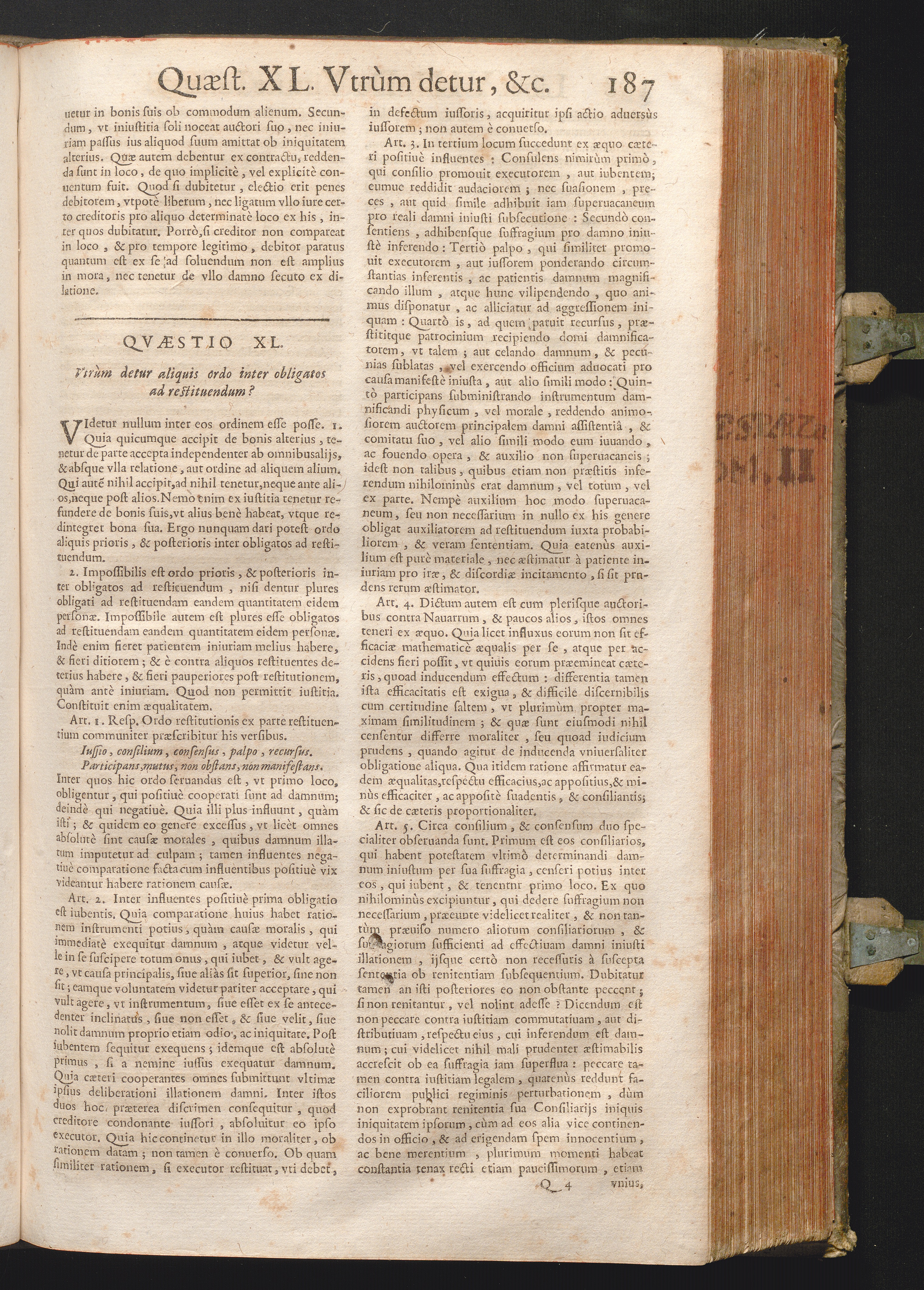 XL. Vtrum detur aliquis ordo inter obligates ad restituendum?