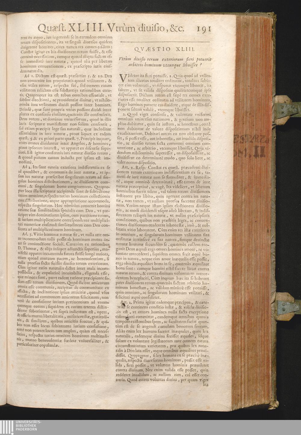XLIII. Vtrum diuisio rerum exteriorum fieri potuerit arbitrio hominum, vtcumque [...]