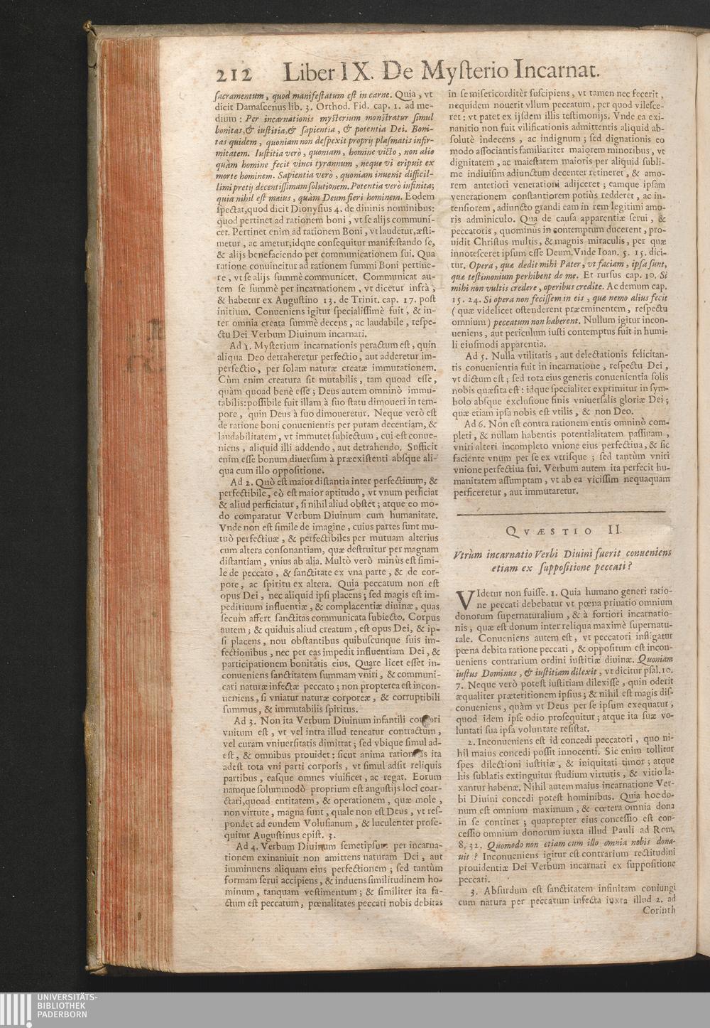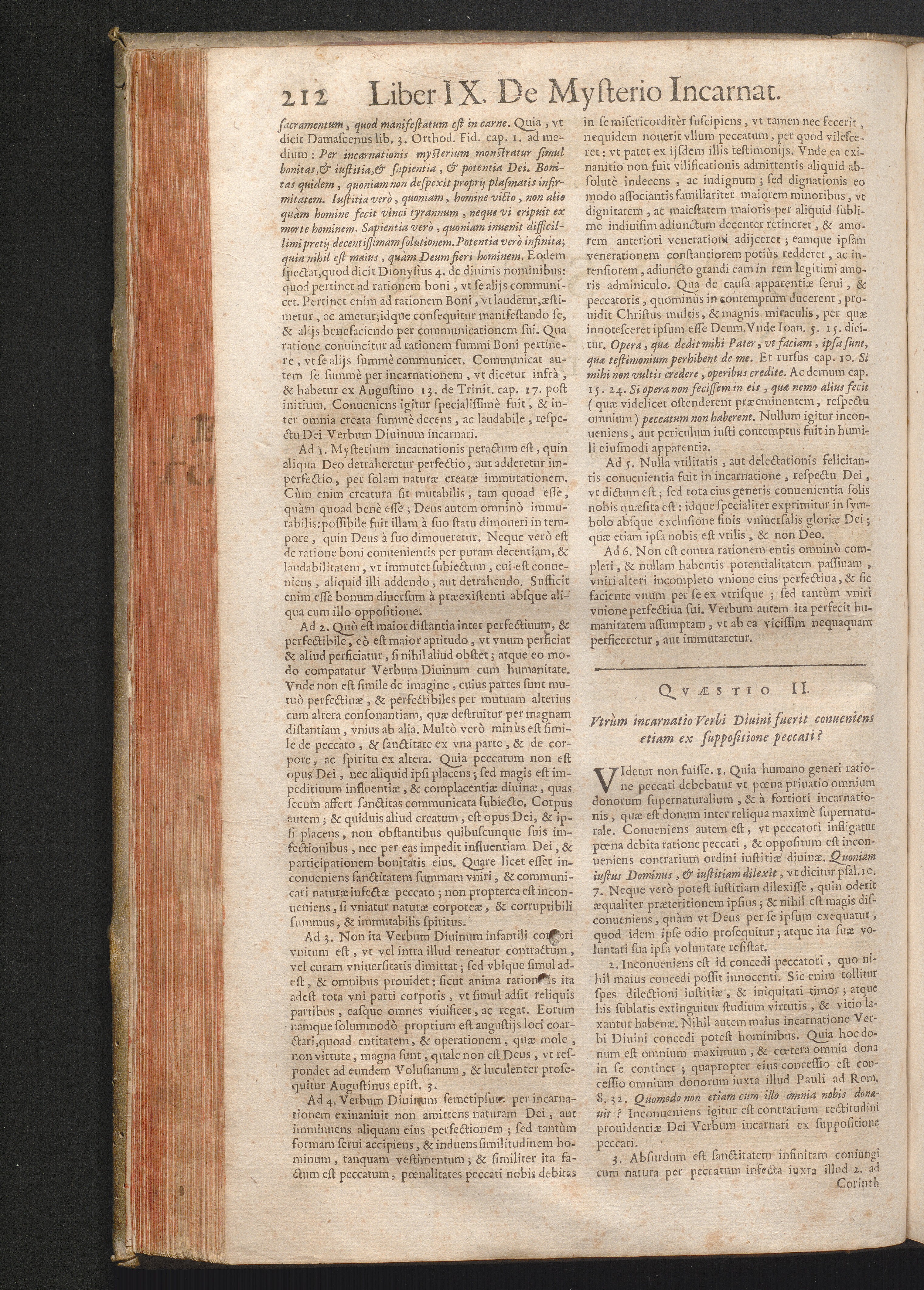 Qvæst. II. Vtrum Incarnatio Verbi Diuini fuerit conueniens etiam ex suppositione[...]