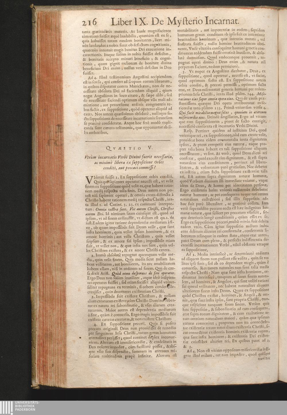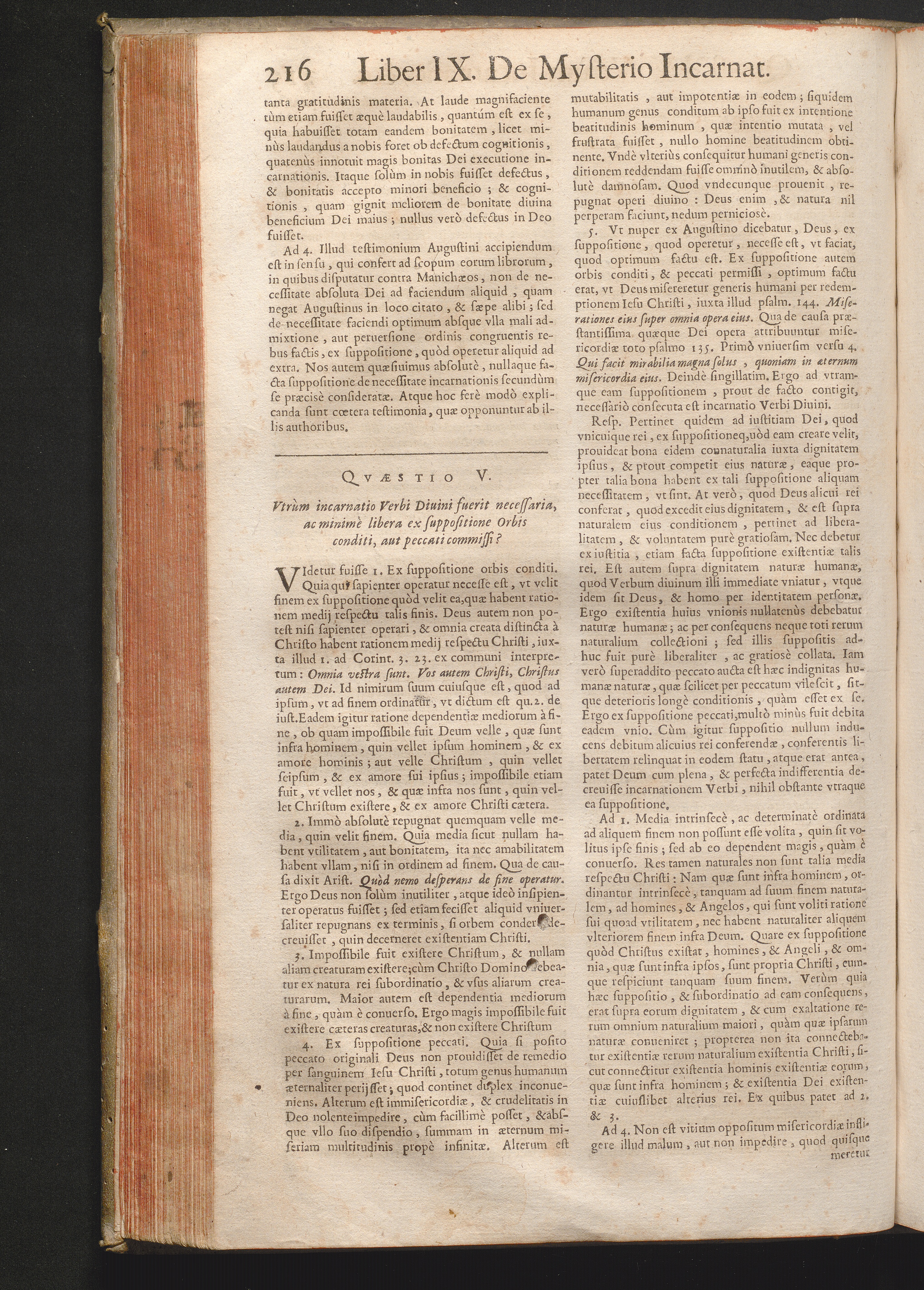 V. Vtrum Incarnatio Verbi Diuini fuerit necessaria, ac minimè libera ex suppositione[...]