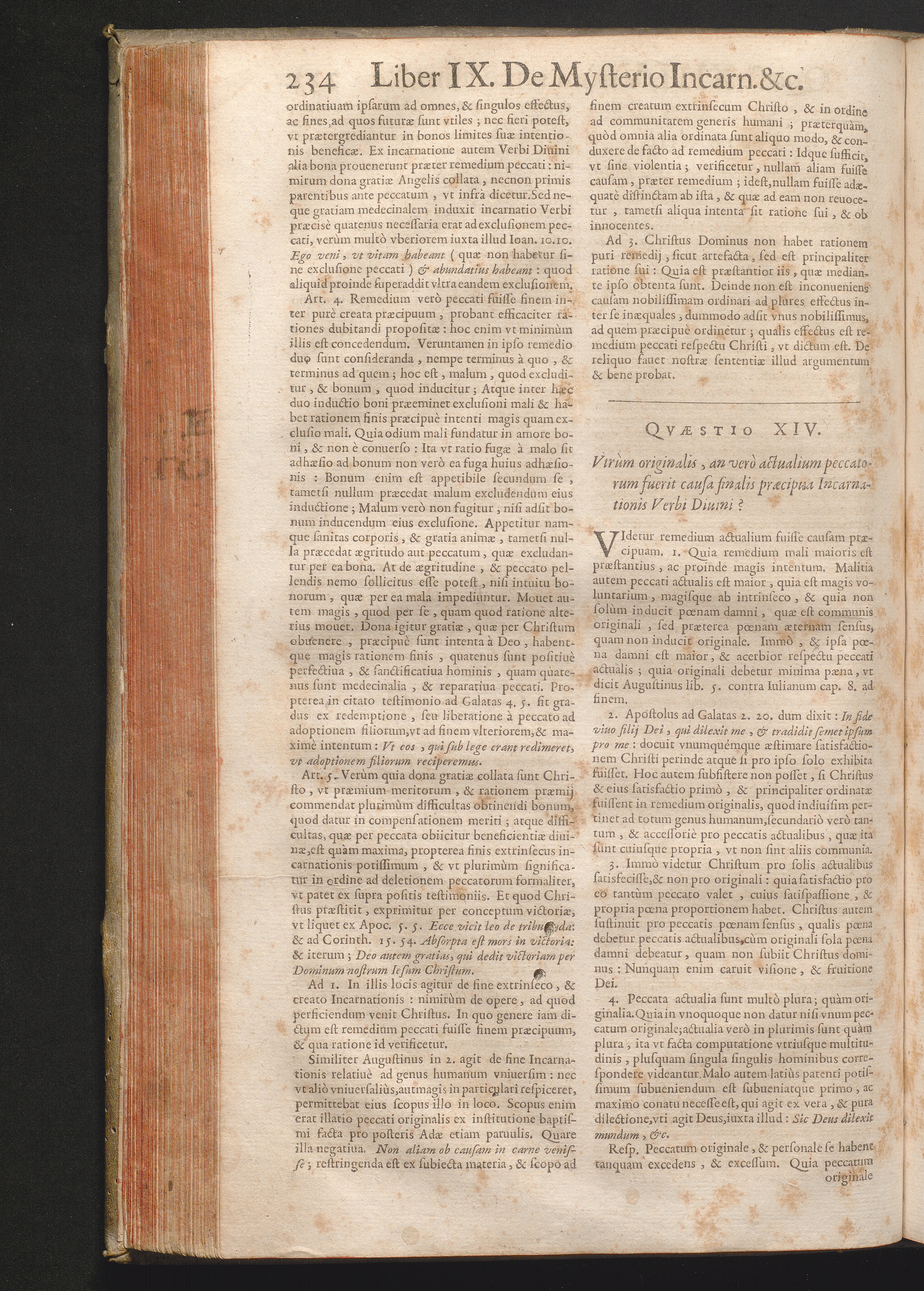 XIV. Vtrum remedium originalis, an verò actualium peccatorum fuerit causa finalis[...]