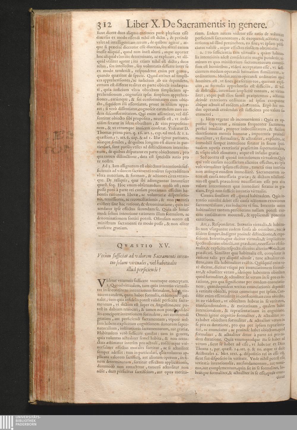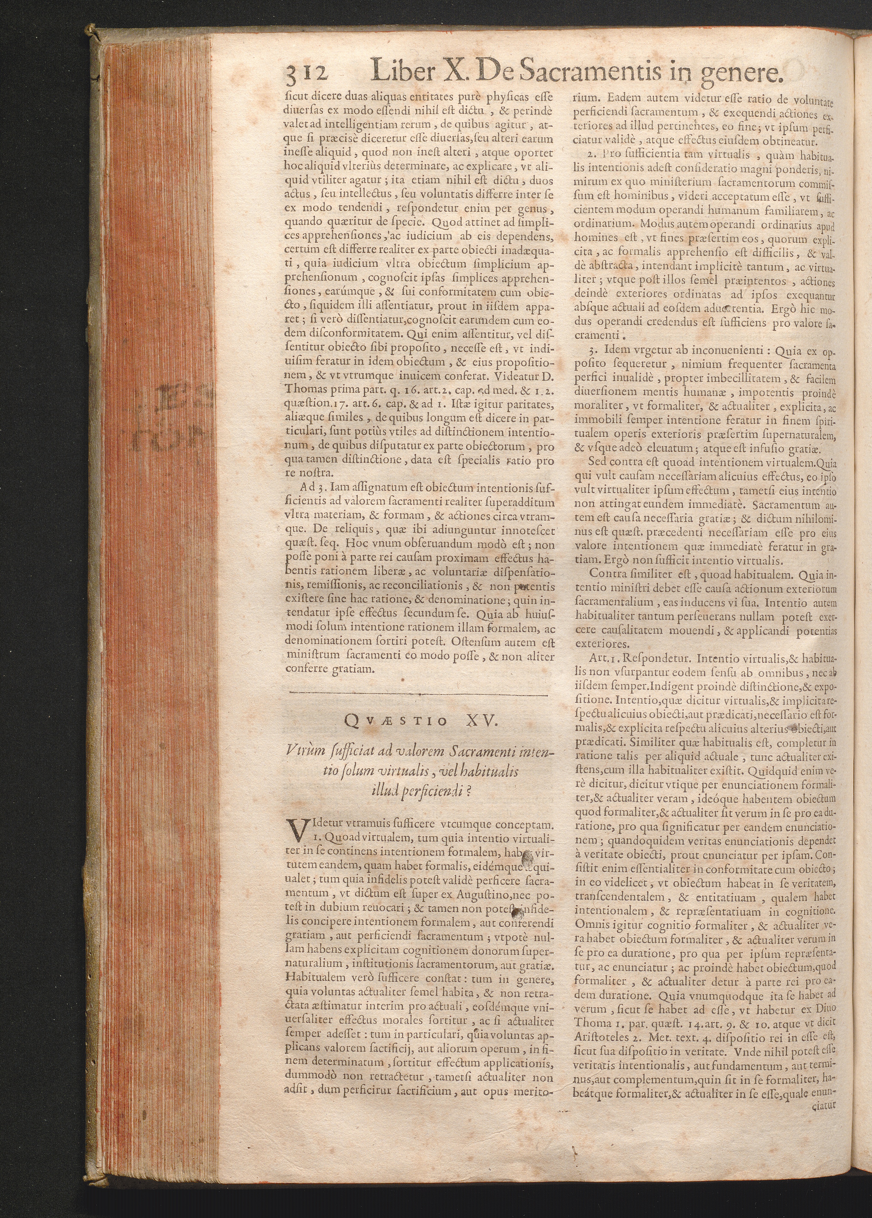 XV. Vtrum sufficiat ad valorem sacramenti intentio virtualis, vel habitualis illud[...]