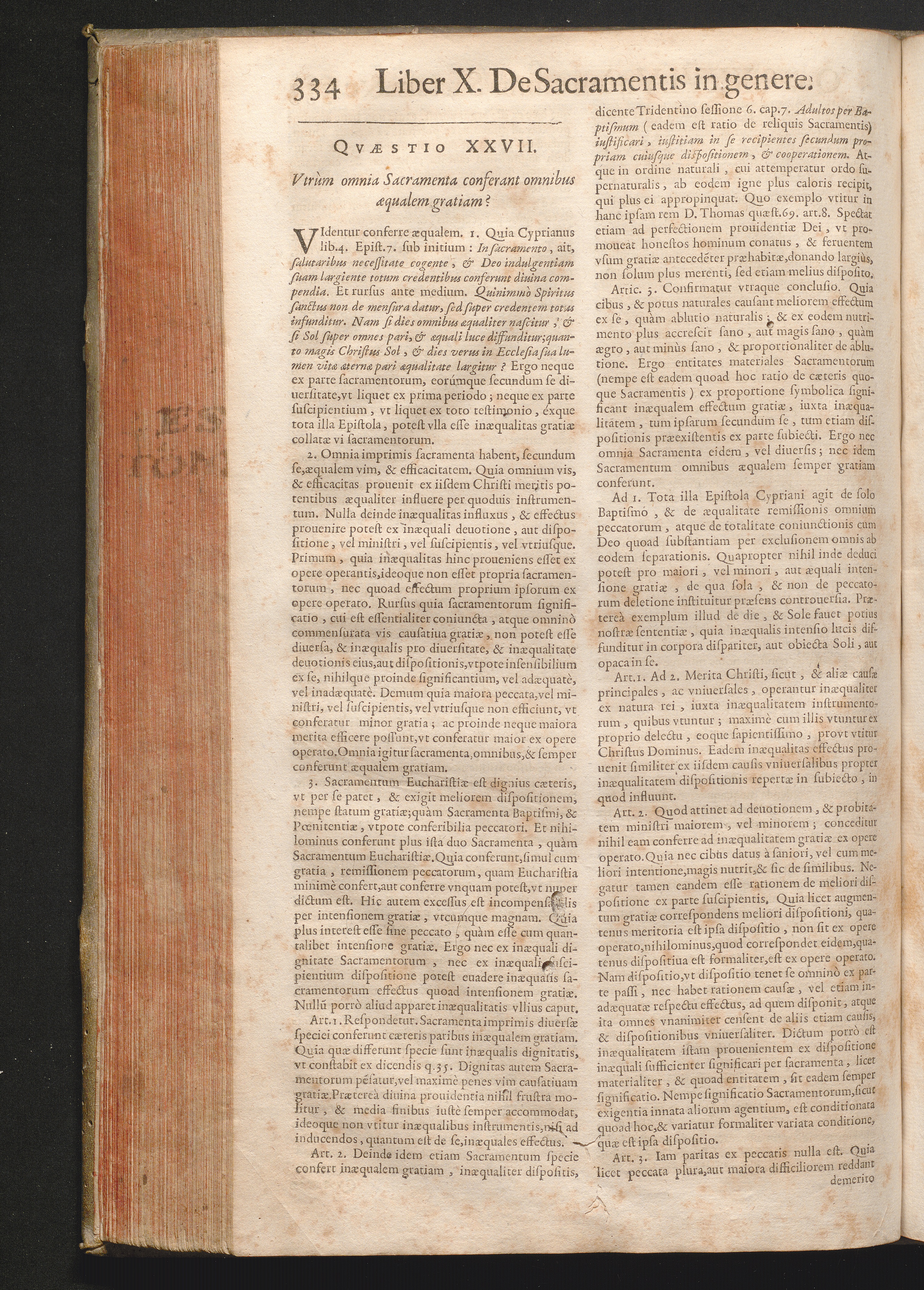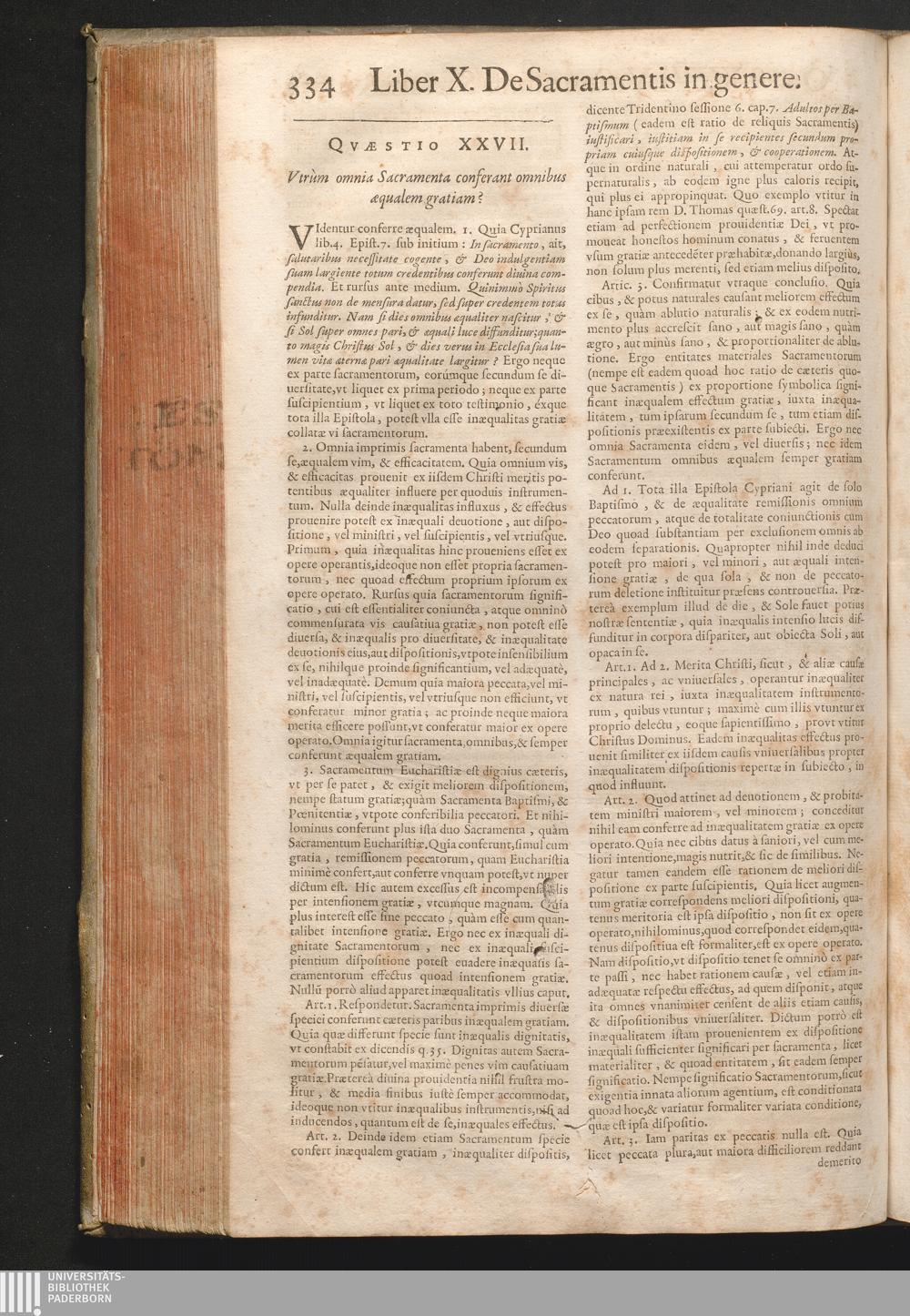 XXVII. Vtrum omnia sacramenta conferant omnibus æqualem gratiam?