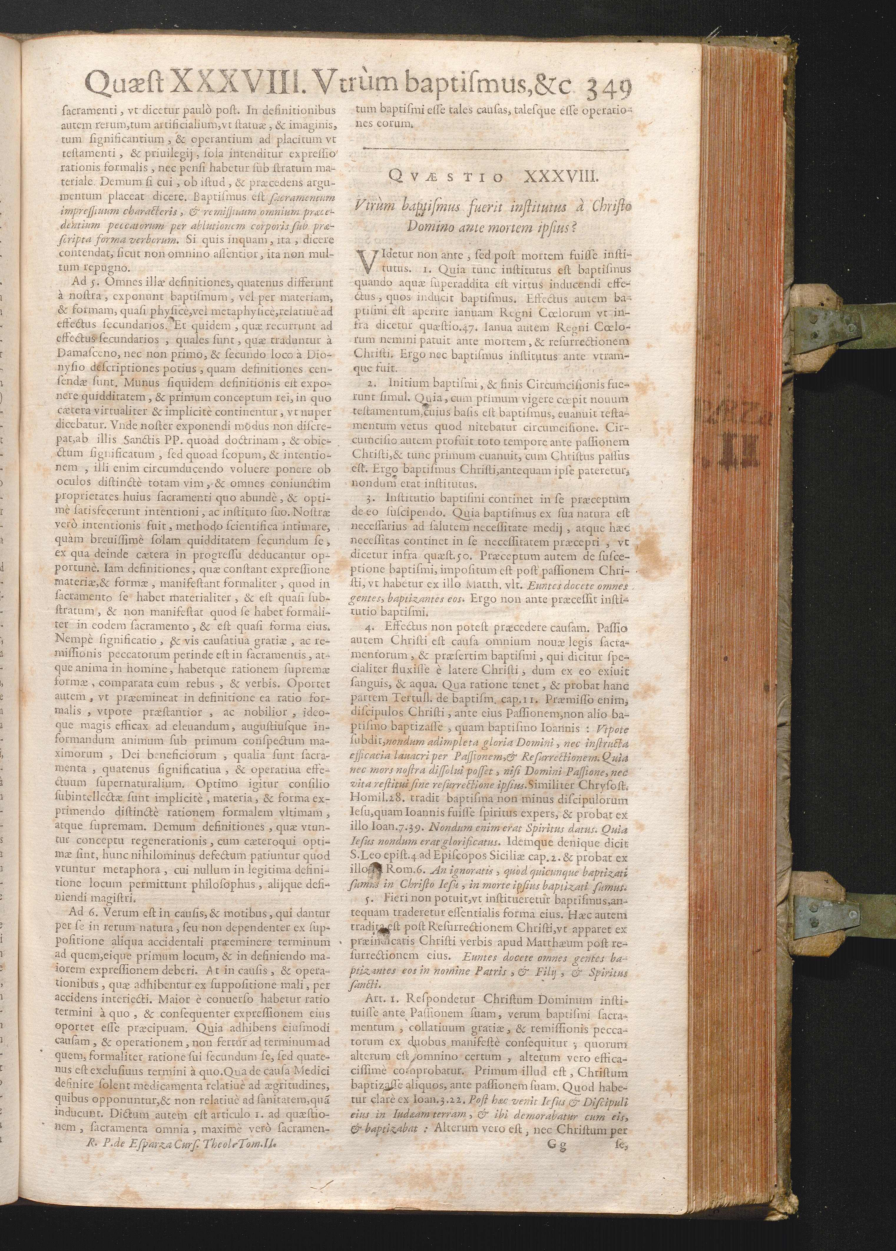 XXXVIII. Vtrum Baptismus fuerit institutus à Christo Domino ante mortem ipsius?