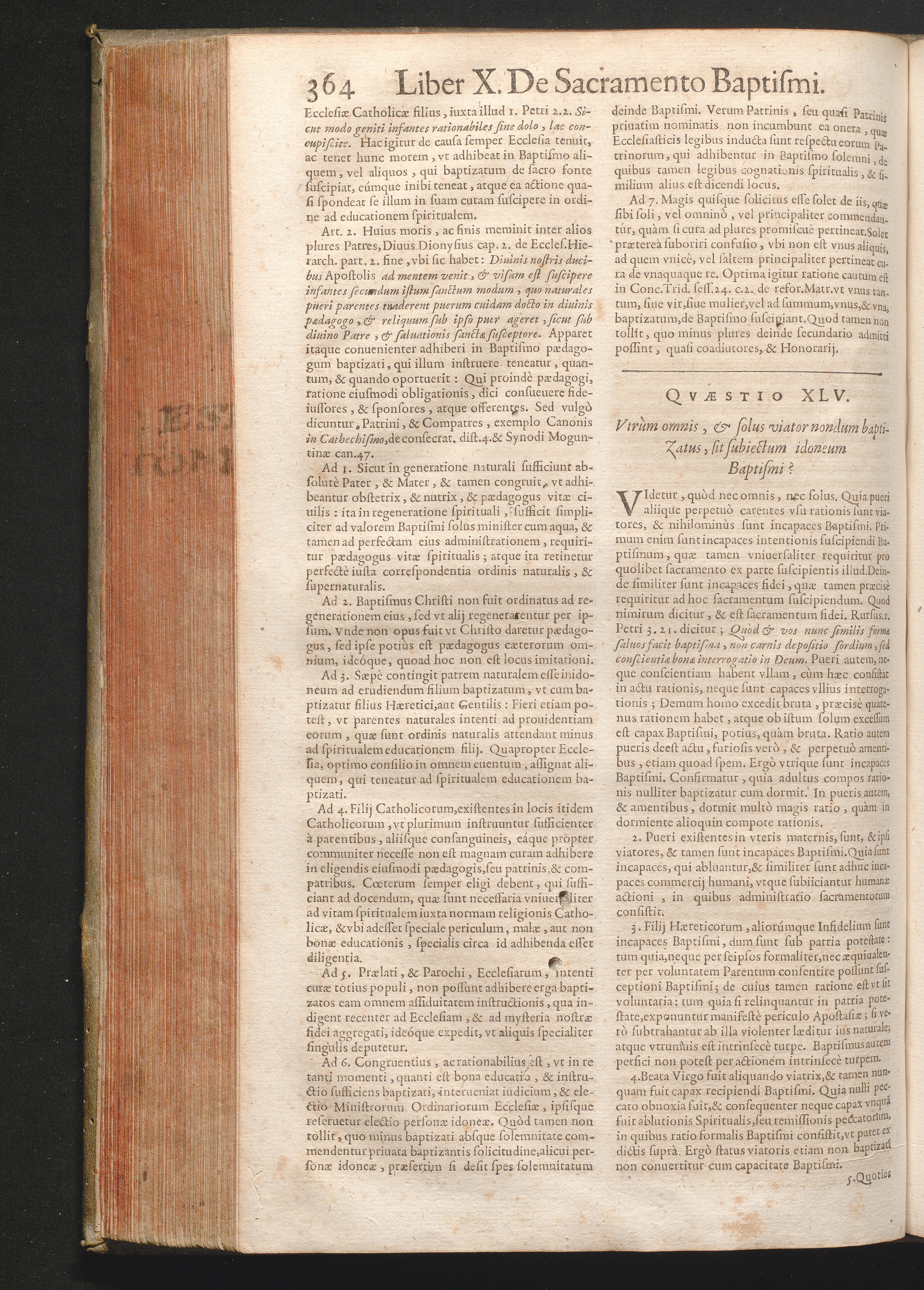 XLV. Vtrum omnis, & solus viator nondum baptizatus sit subiectum idoneum baptism[...]