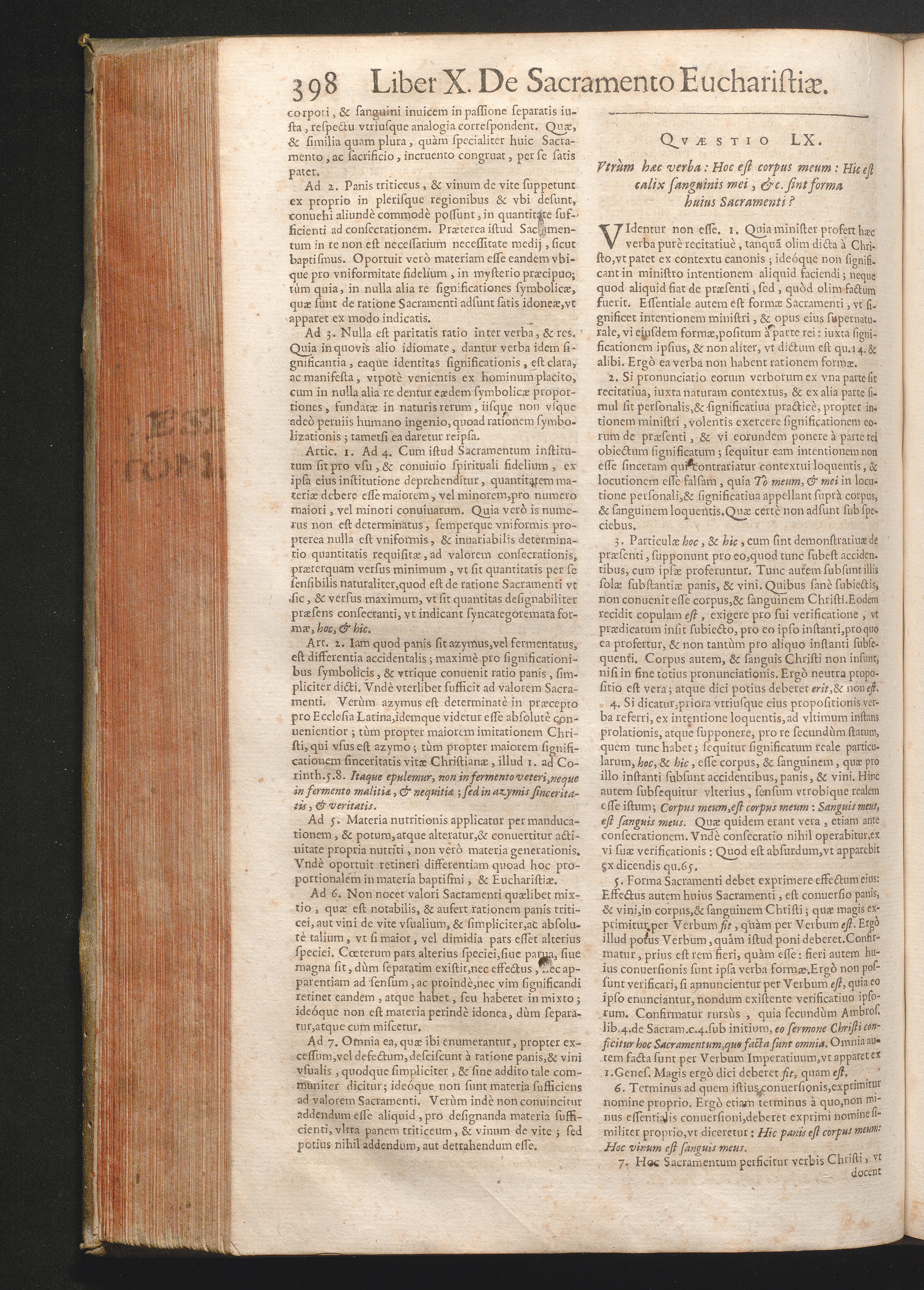 LX. Vtrum hæc verba: Hoc est corpus meum: Hic est calix sanguinis mei, &c. sint forma[...]