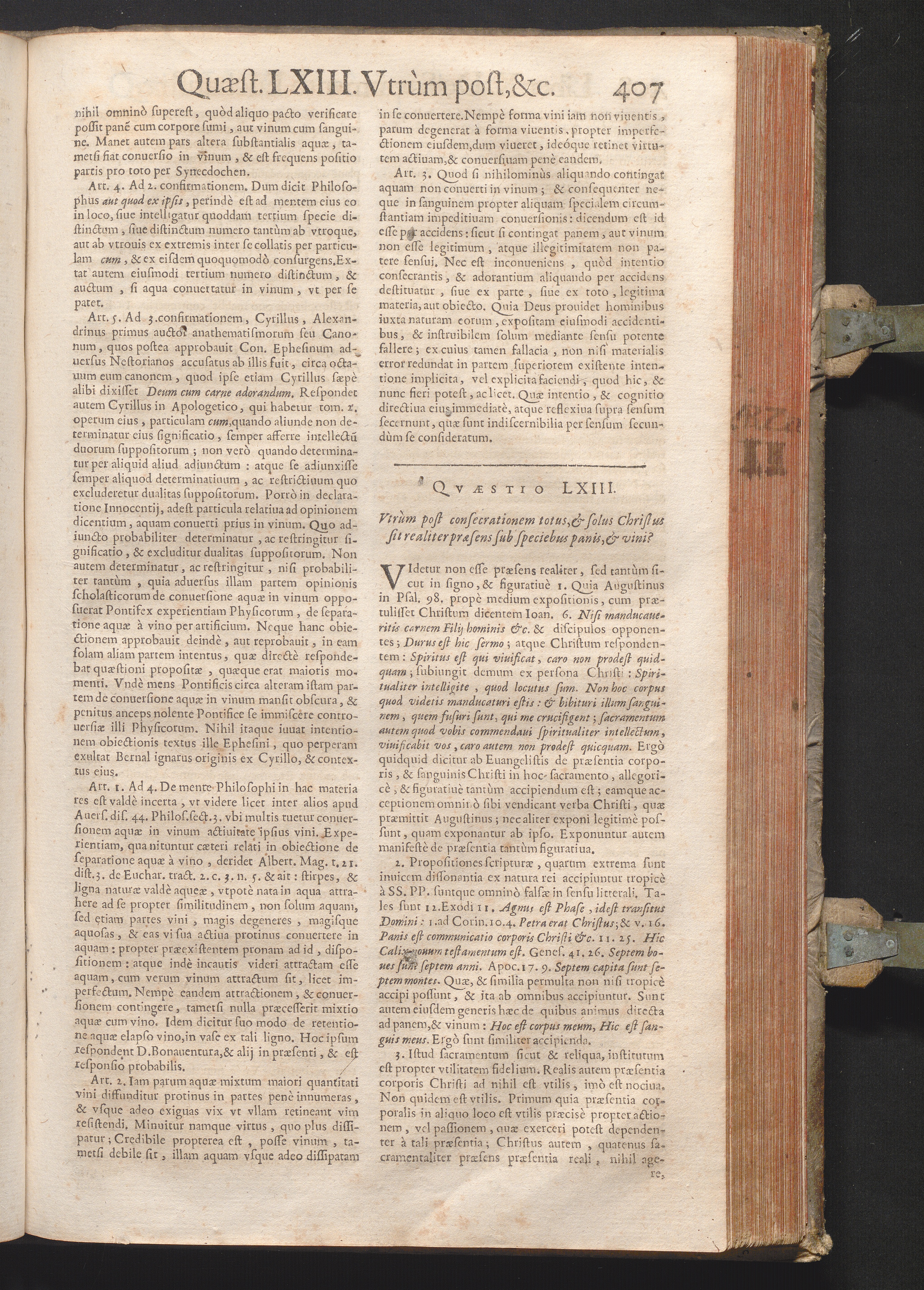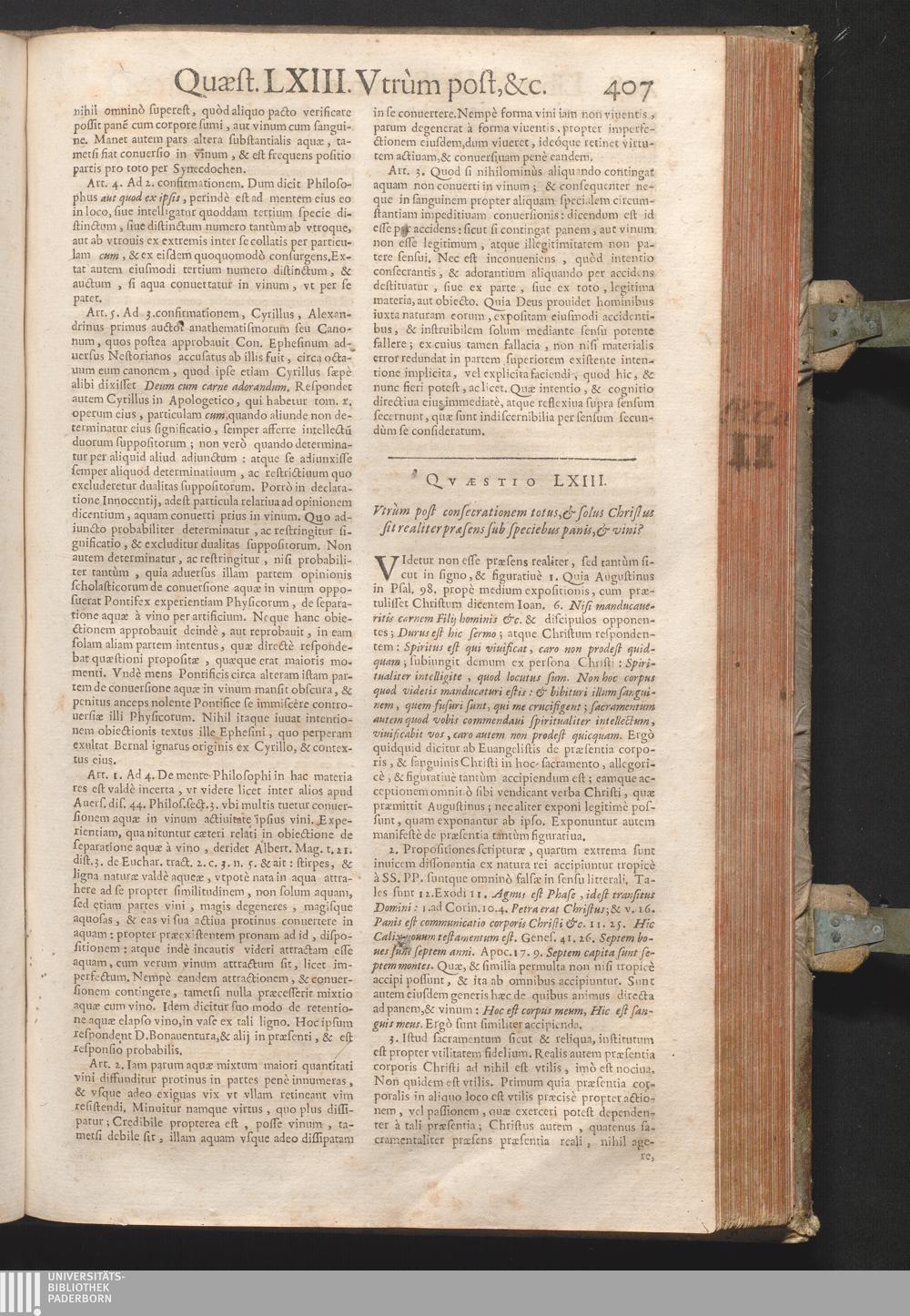LXIII. Vtrum post consecrationem totus, & solus Christus sit realiter præsens sub[...]