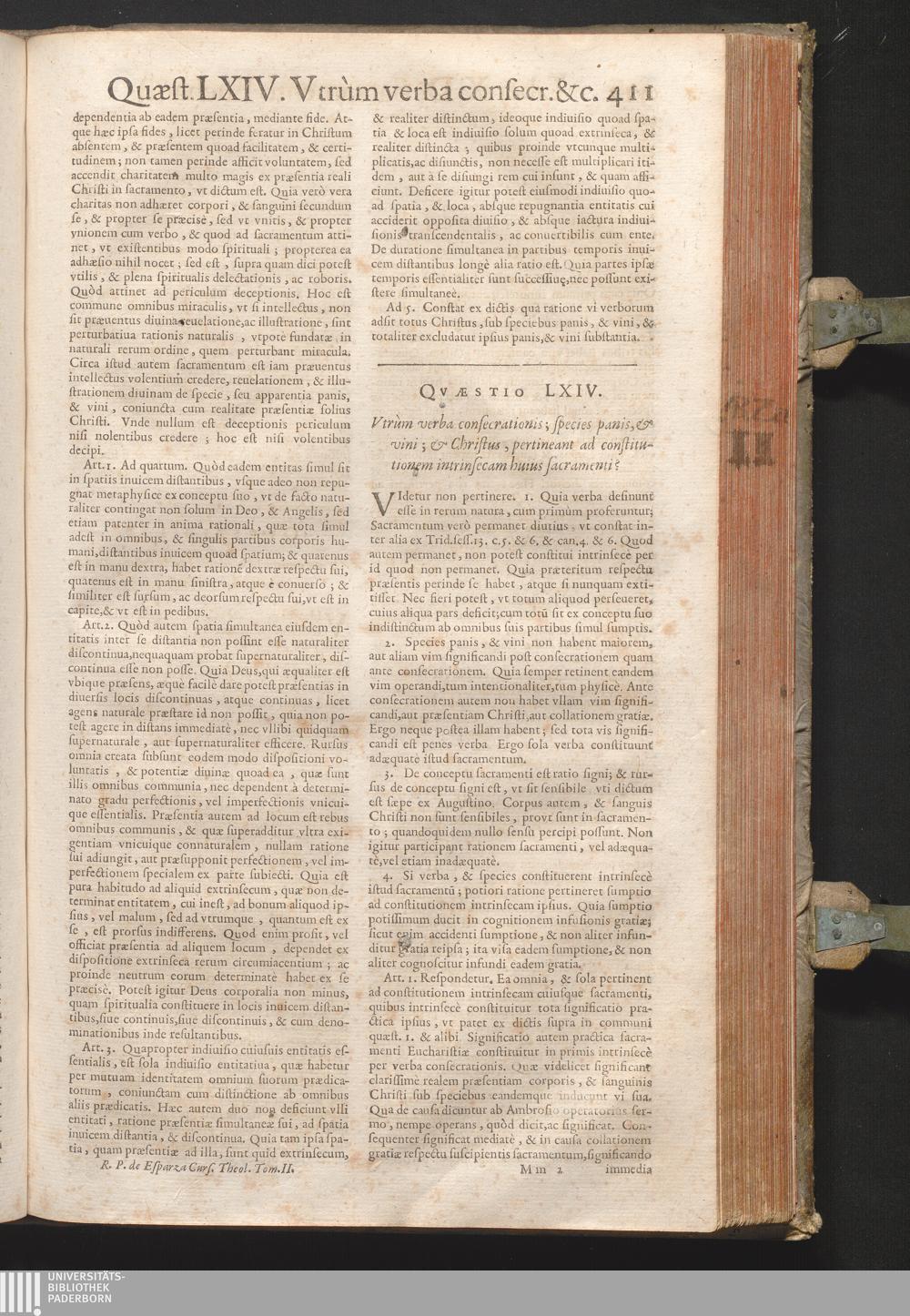 LXIV. Vtrum verba consecrationis, species panis, & vini, & Christus pertineant ad[...]