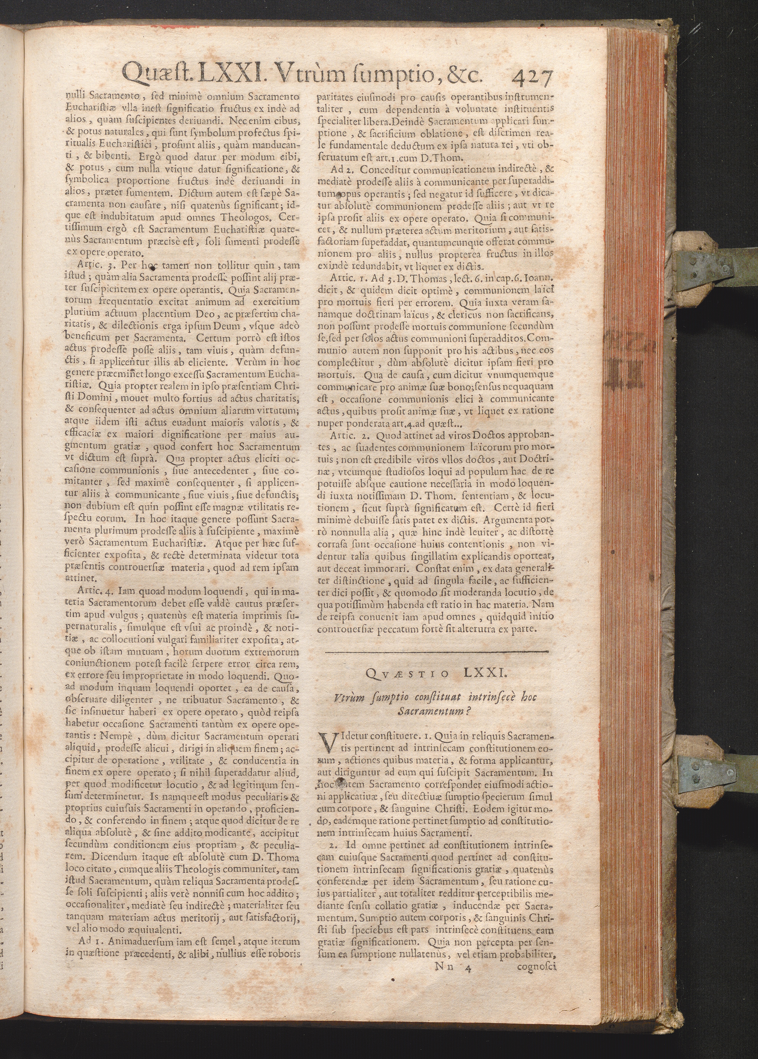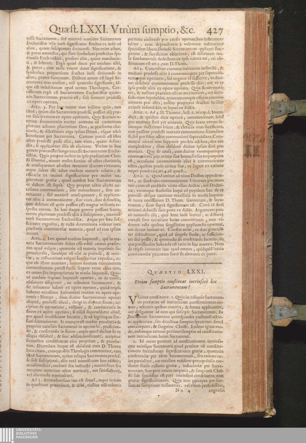 LXXI. Vtrum sumptio constituat intrinsecè hoc sacramentum.