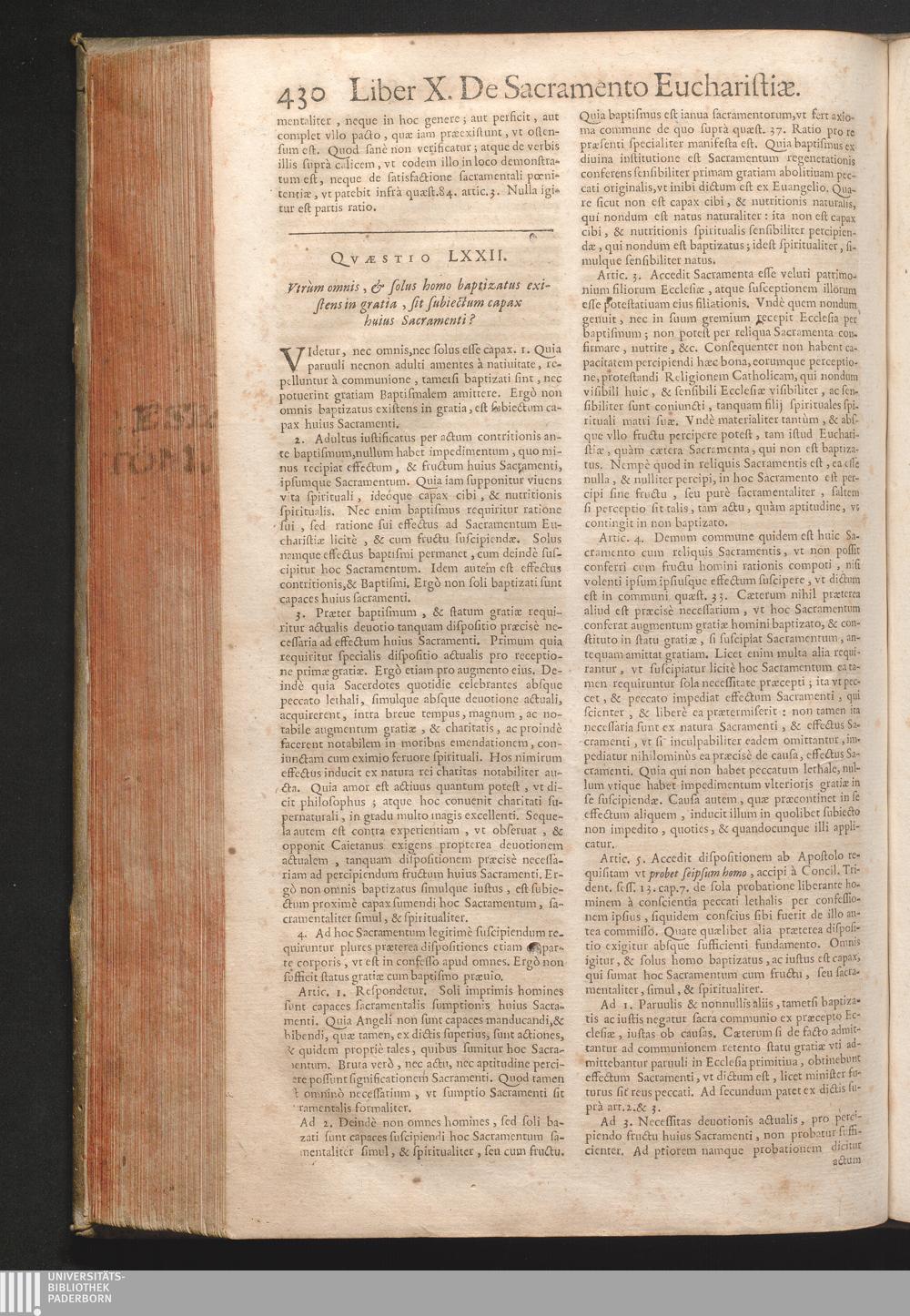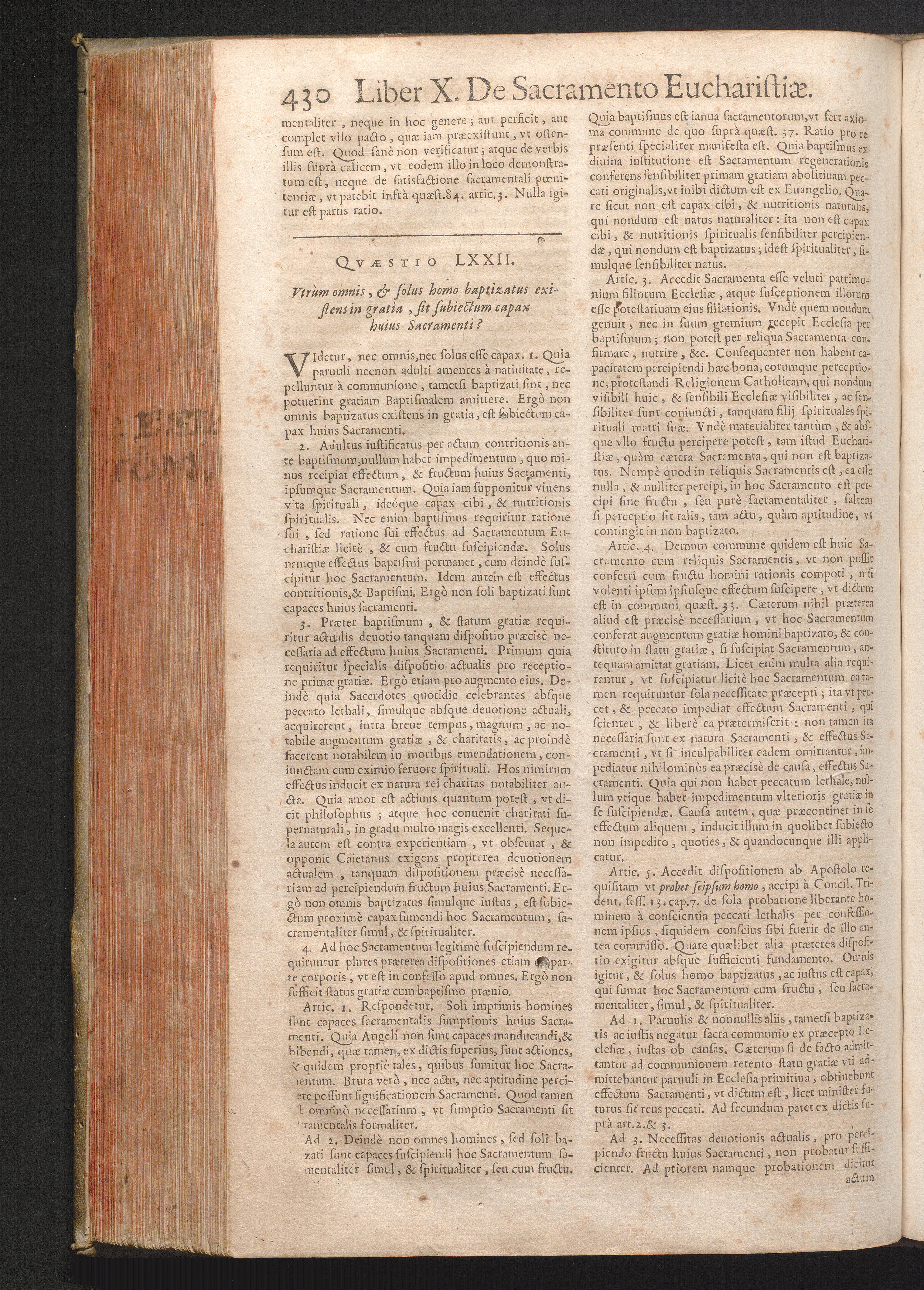 LXXII. Vtrum omnis, & solus baptizatus existens in gratia, sit subiectum capax huius[...]