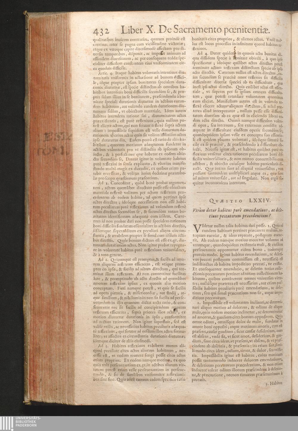 LXXIV. Vtrum detur habitus purè emendatiuus, ac deletiuus peccatorum præcedentiu[...]