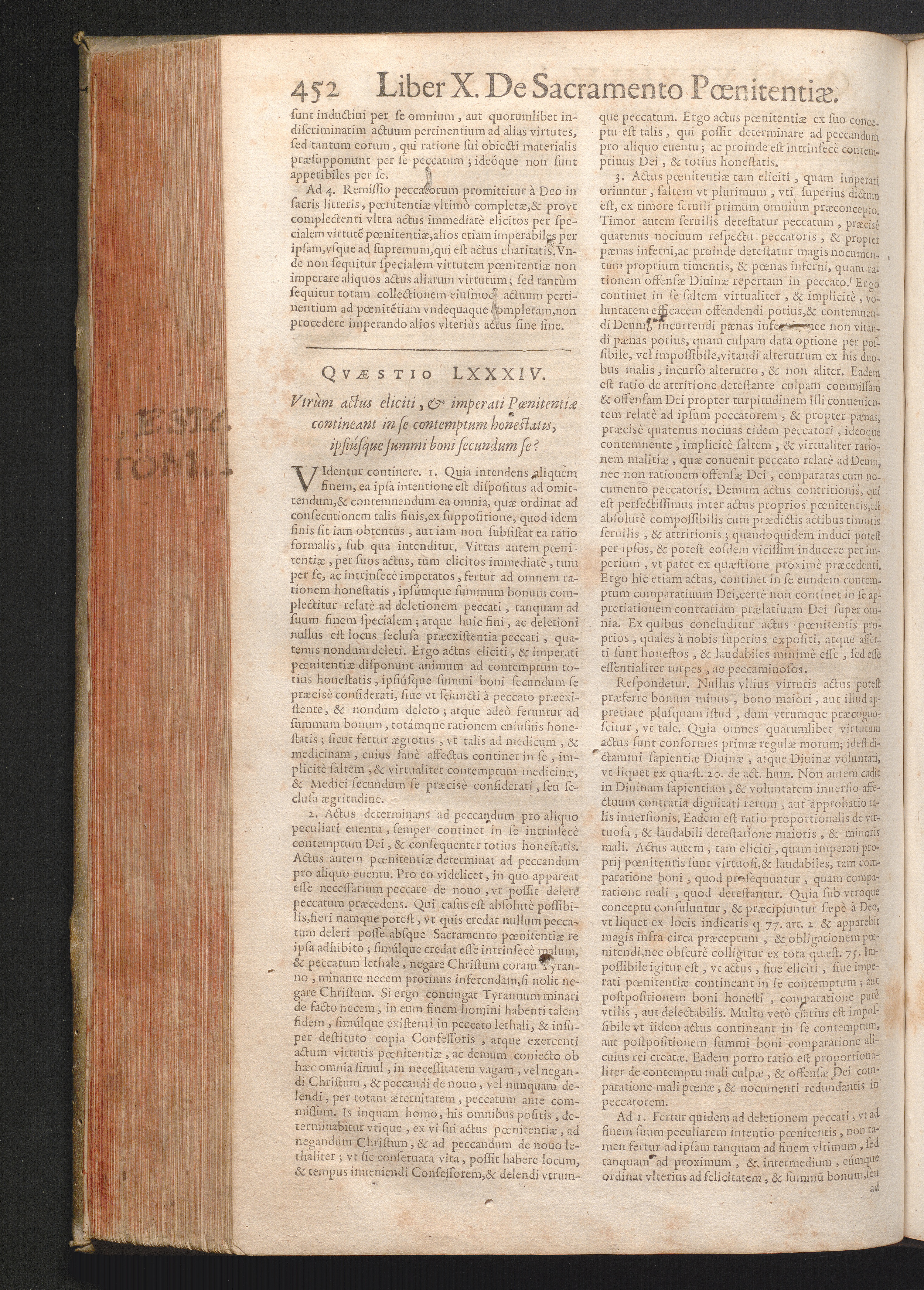 LXXXIV. Vtrum actus eliciti, & imperati pœnitentiæ contineant in se contemptum honestatis,[...]