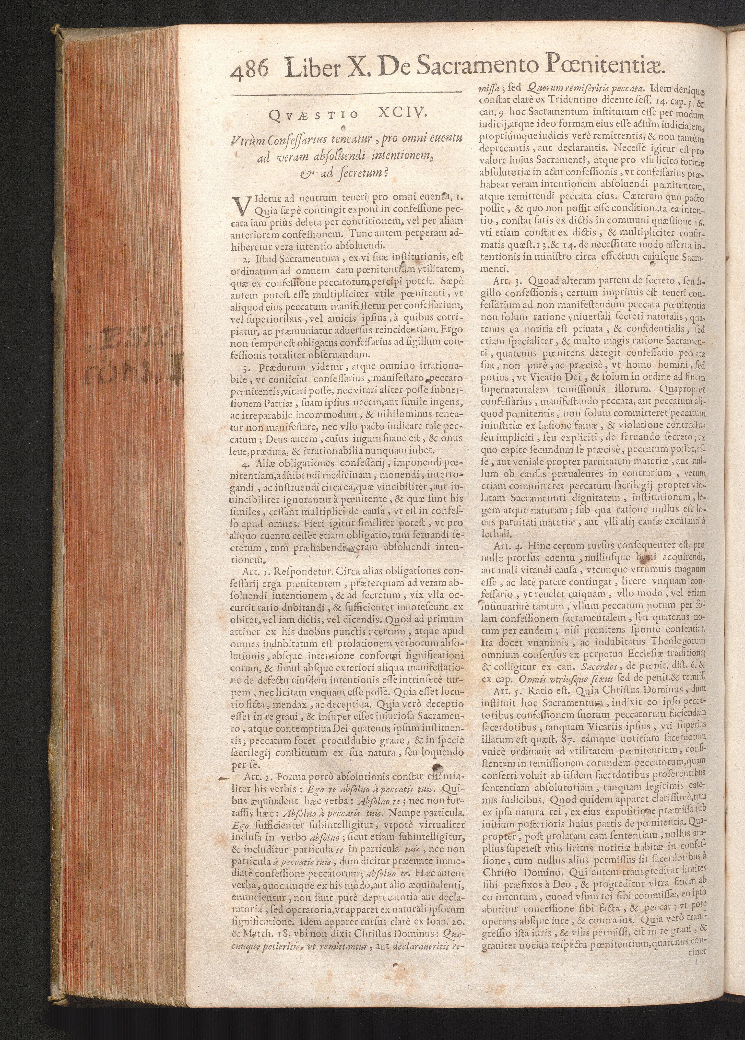 XCV. Vtrum Confessarius teneatur pro omni euentu ad veram intentionem absoluendi,[...]