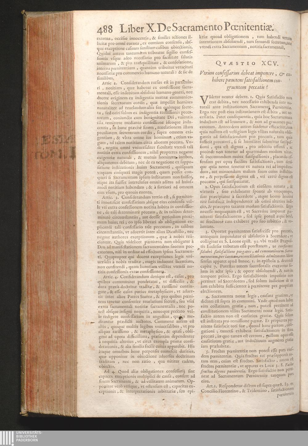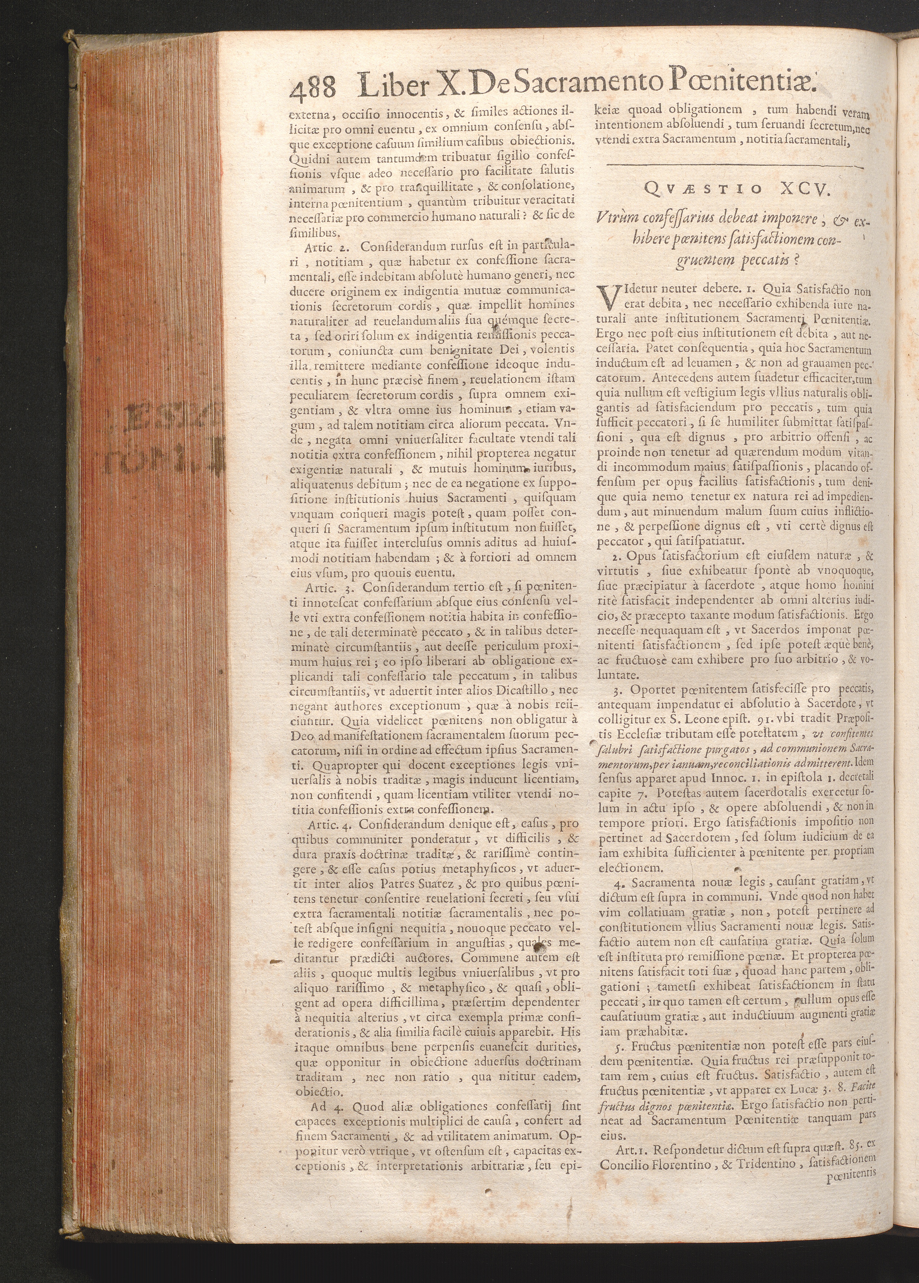 XCV. Vtrum Confessarius debeat imponere, & exhibere pœnitens satisfactionem congruentem[...]