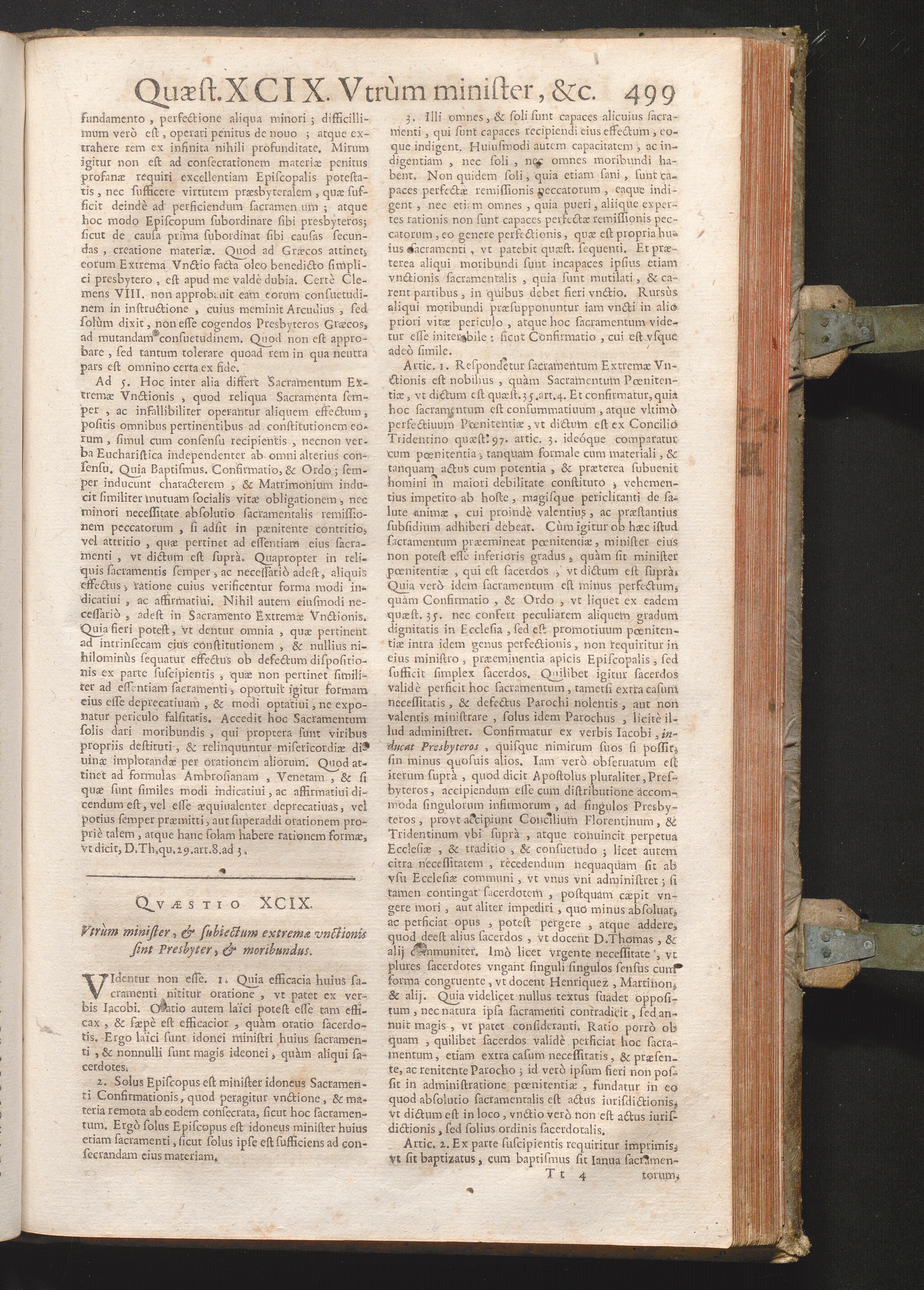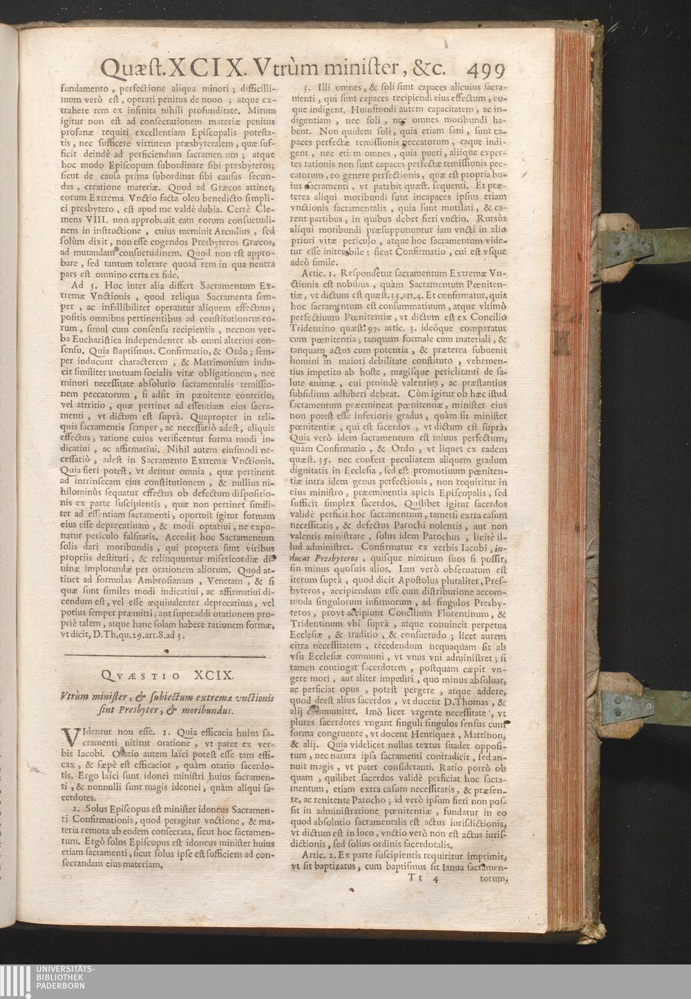 XCIX. Vtrum minister, & subiectum Extremæ Vnctionis sint Presbyter, & moribundus[...]
