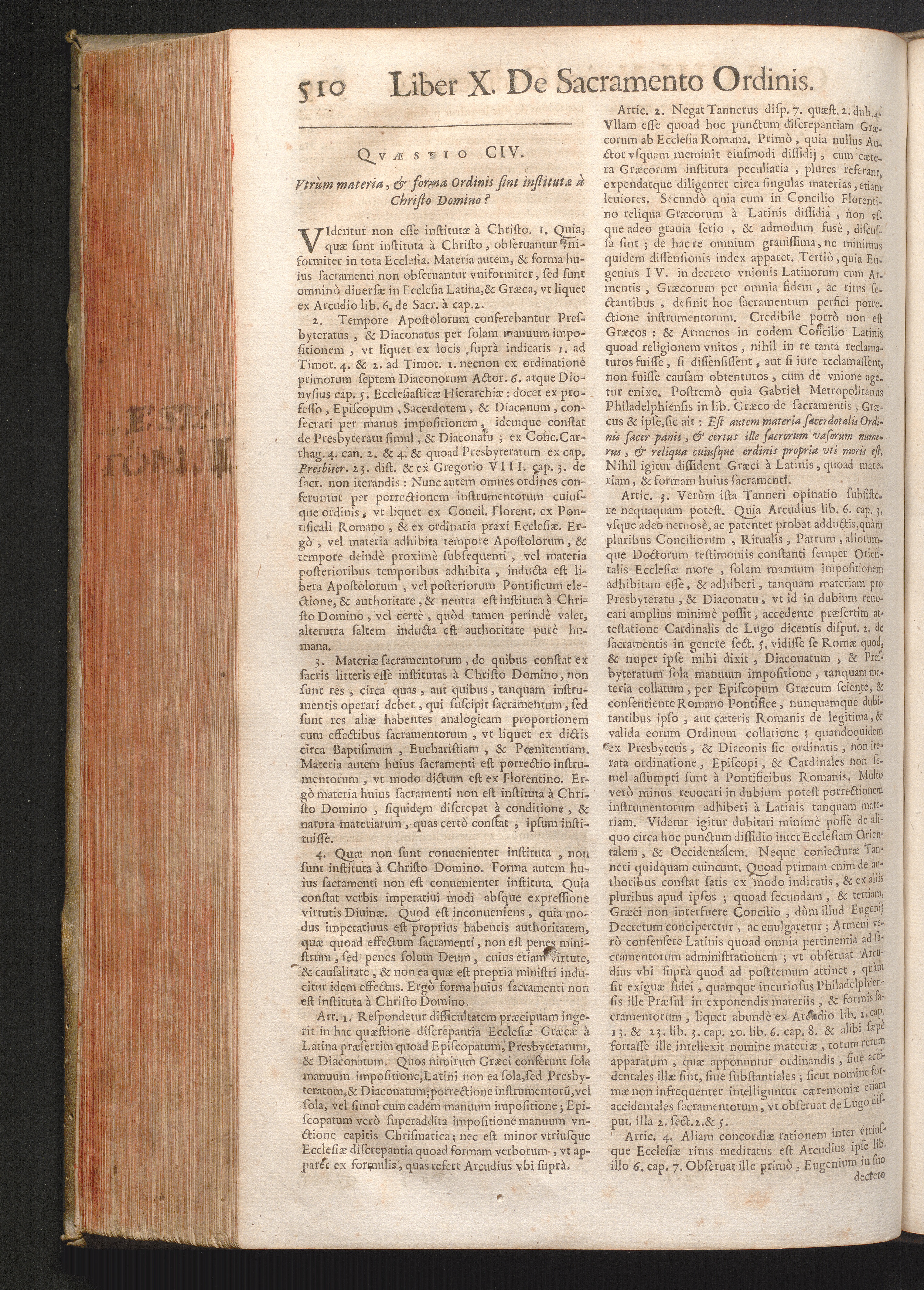 CIV. Vtrum materia, & forma Ordinis sint institutæ à Christo Domino?