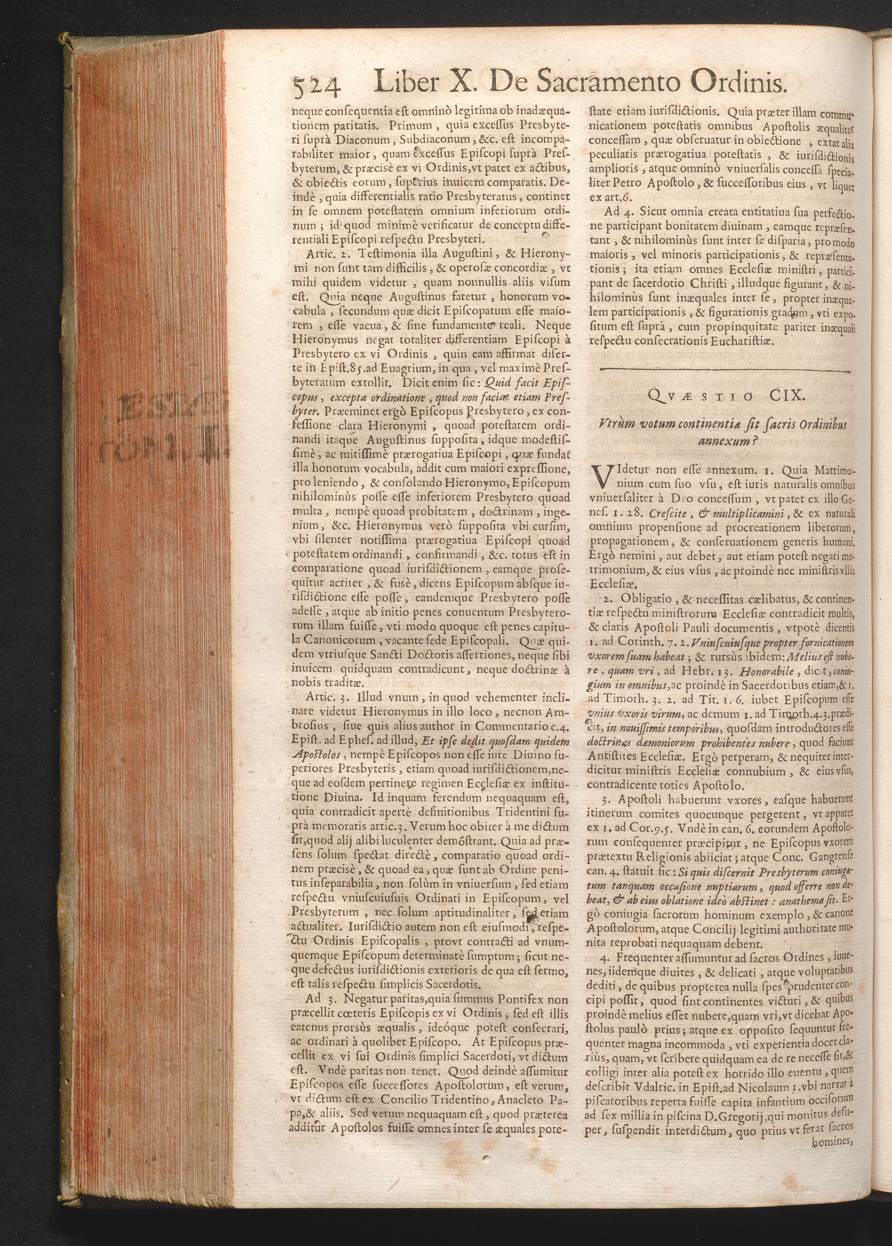 CIX. Vtrum votum continentiæ sit sacris Ordinibus annexum?