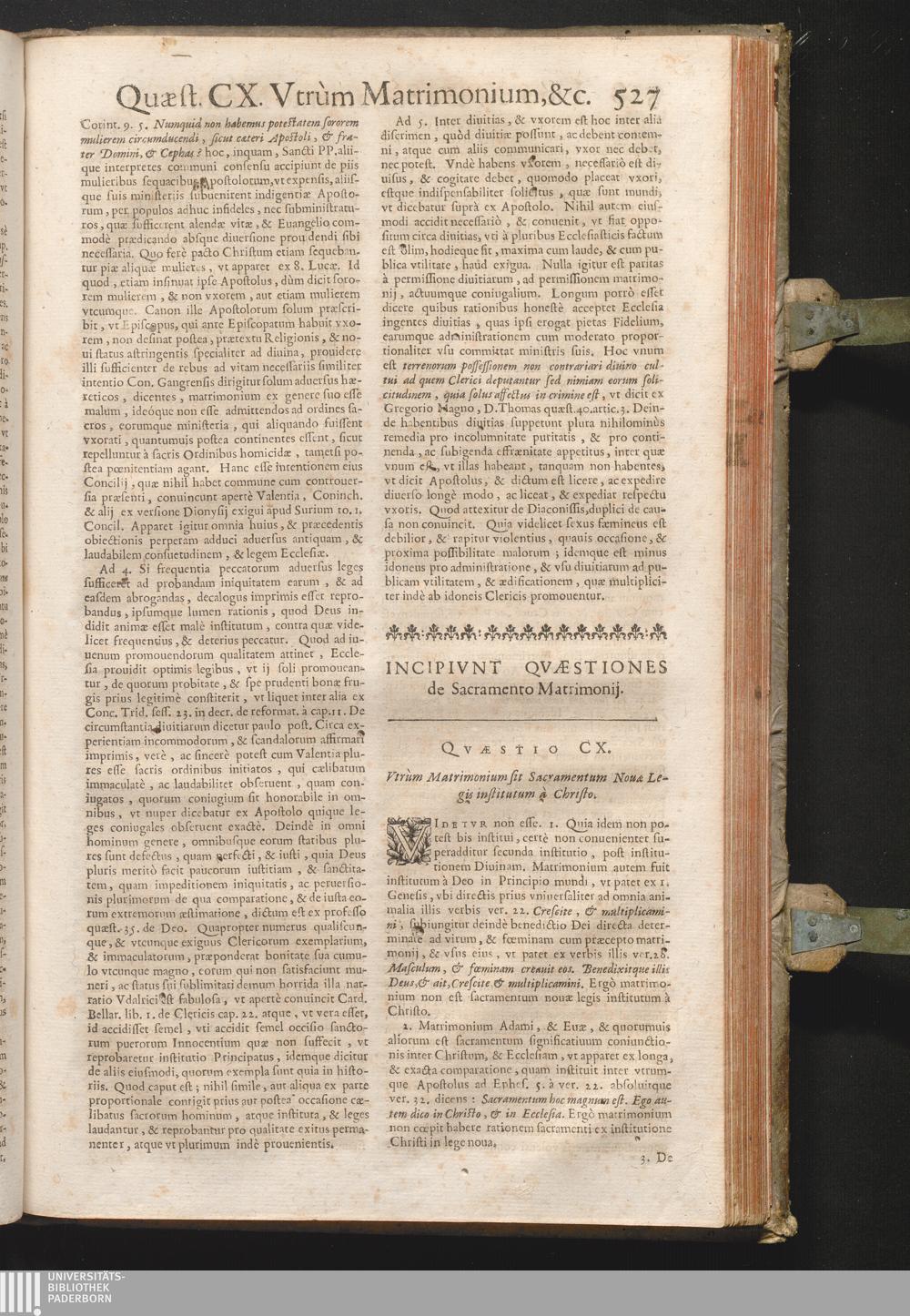 Qvæstio CX. Vtrum matrimonium sit Sacramentum nouæ legis institutum à Christo?