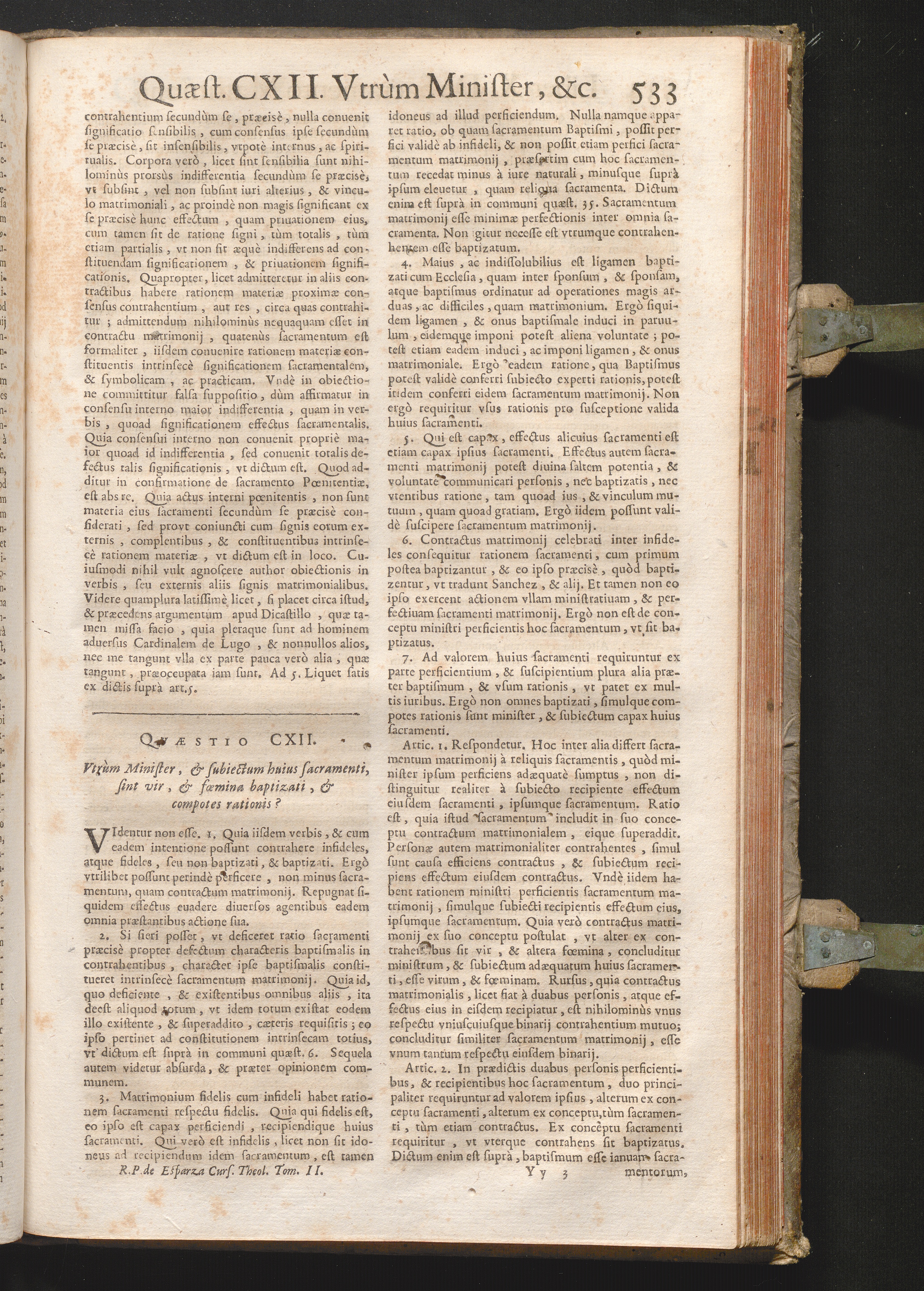 CXII. Vtrum minister, & subiectum huius Sacramenti sint vir, & fœmina baptizati,[...]