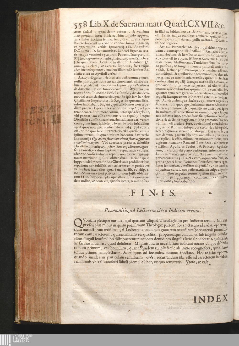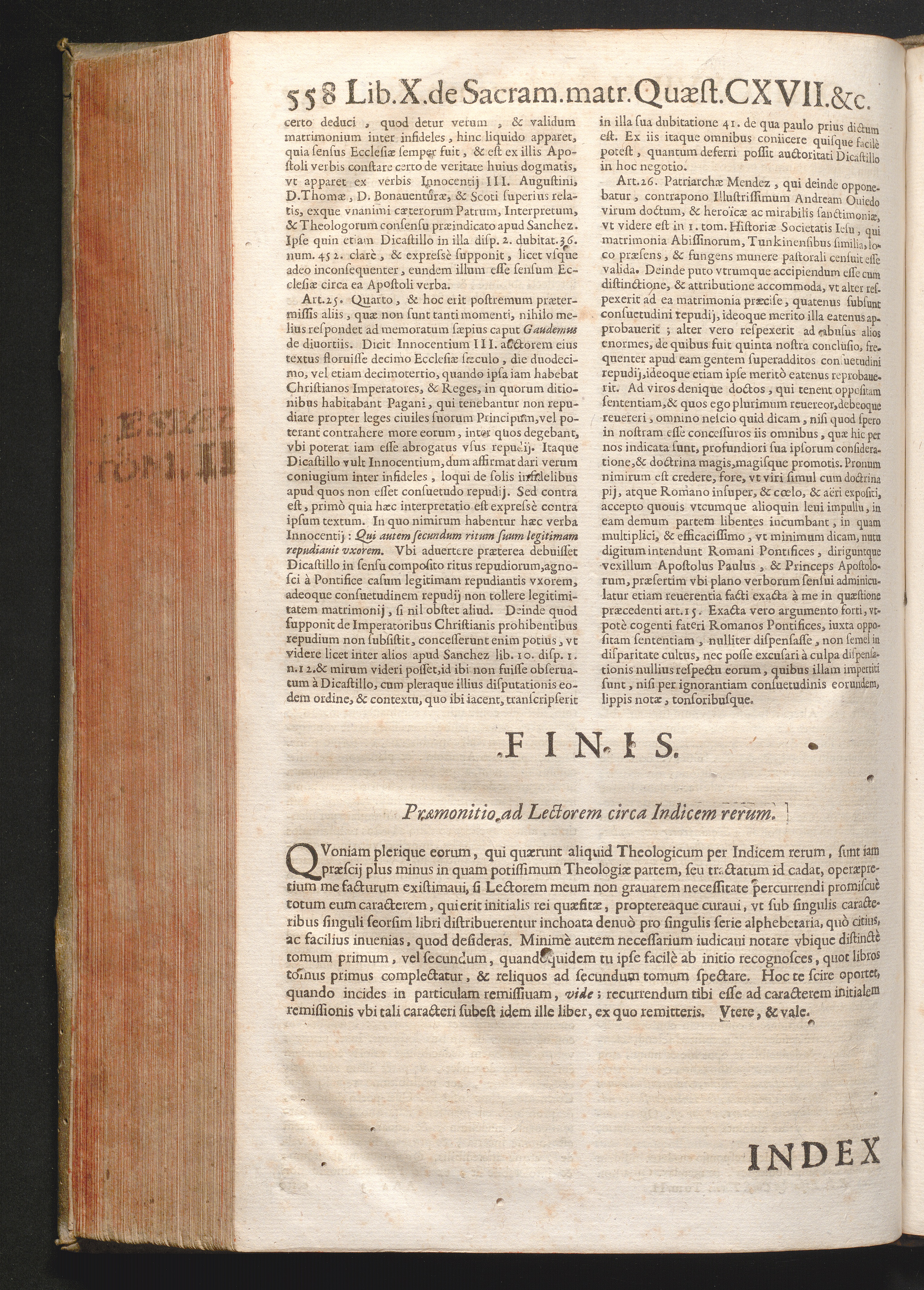 Præmonitio ad Lectorem circa Indicem rerum.