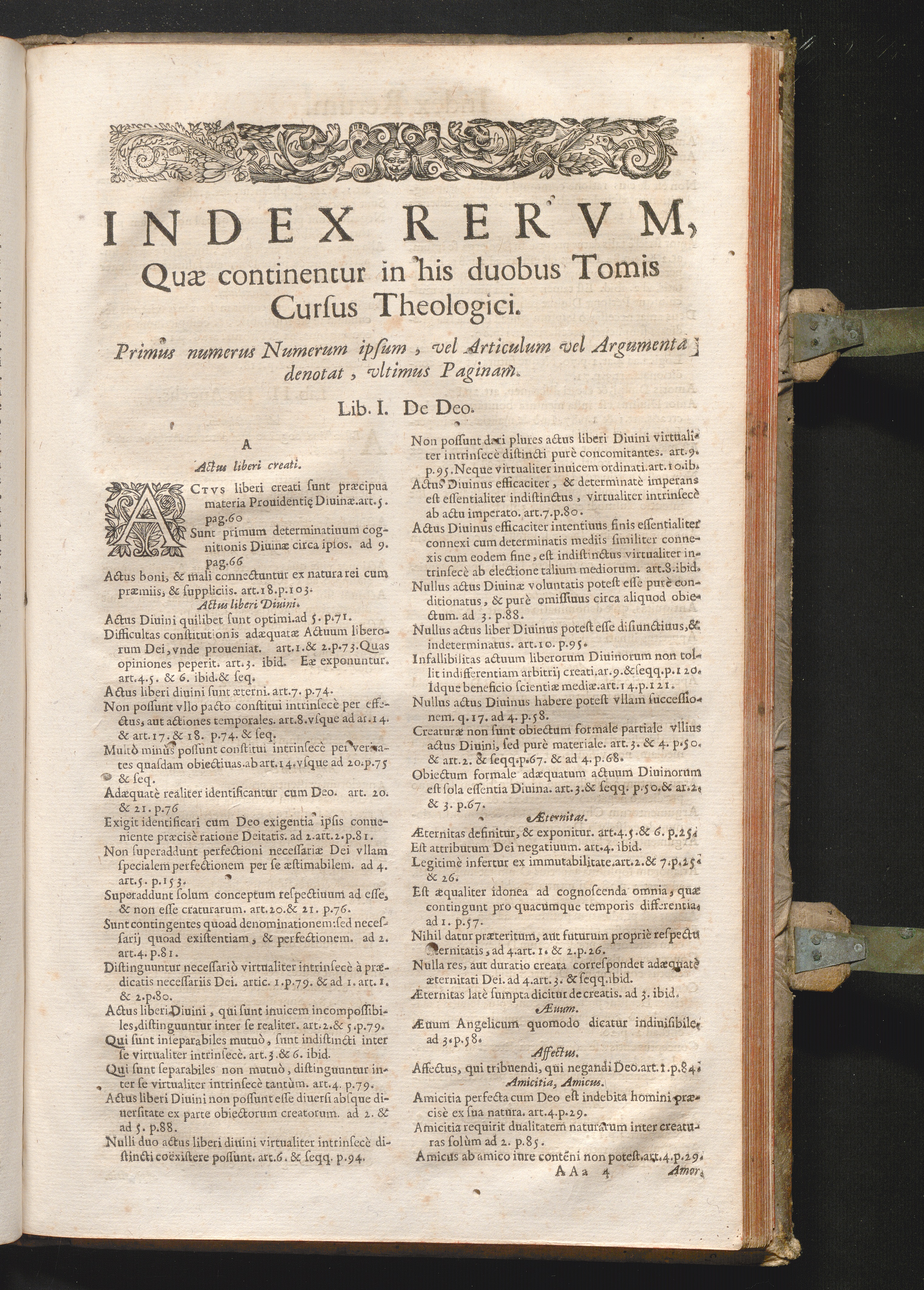 Index Rervm, Quæ continentur in his duobus Tomis Cursus Theologici.